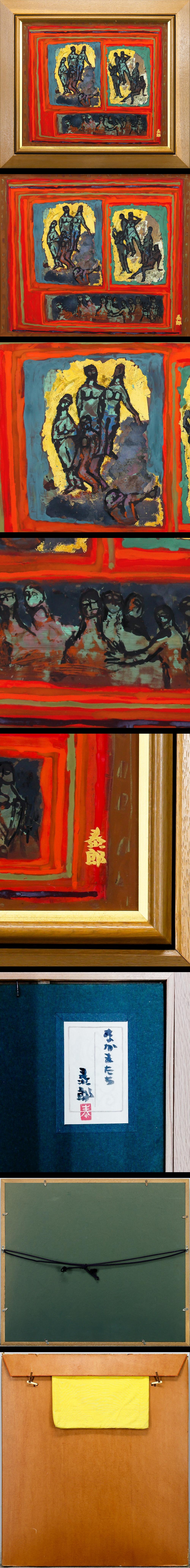 【真作】【WISH】上野泰郎「なかまたち」日本画 10号 金落款 金箔・銀箔仕様 絹本 共シール 〇創画会会員 #26012768 收藏