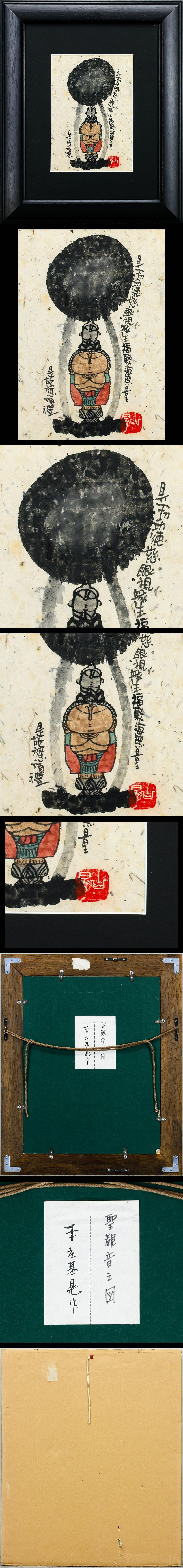 【真作】【WISH】本庄基晃「聖観音之図」日本画 ◆語らず ただ在る祈りの像 〇仏画家 墨彩画追求 国内外個展多数 #26012541 收藏