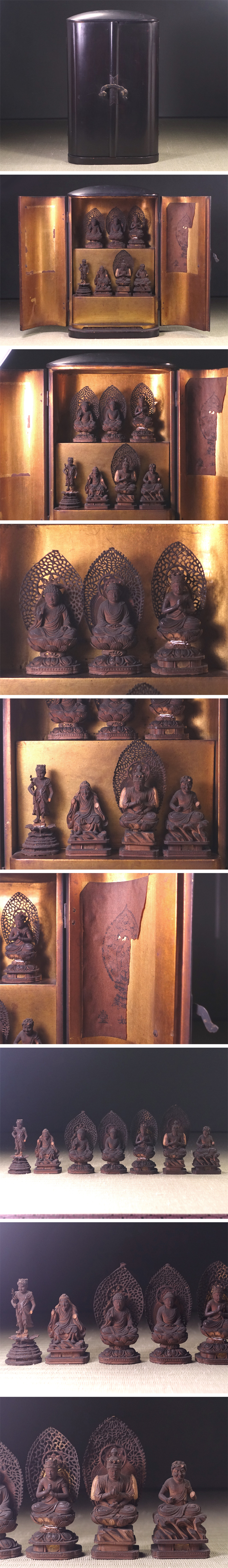 ∇花∇時代仏教美術 木彫大日如来坐像 阿弥陀・明王・役行者など崇高な七尊像 厨子入 收藏