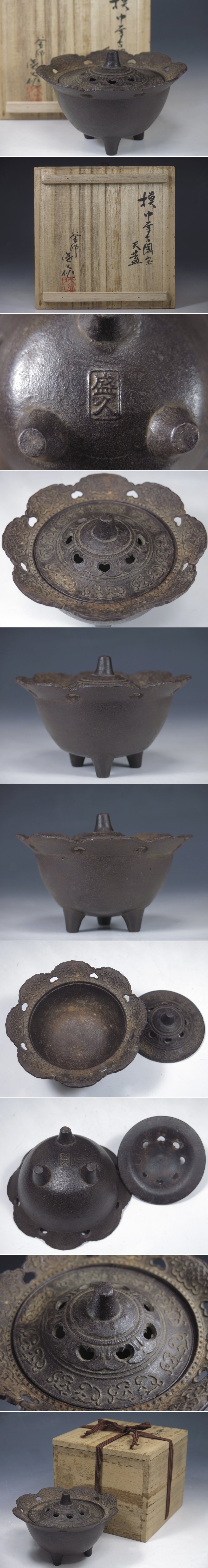 | 商品名 | 釜師 鈴木盛久 模中尊寺国宝 天蓋 香炉 鉄器 共箱 茶道具 |