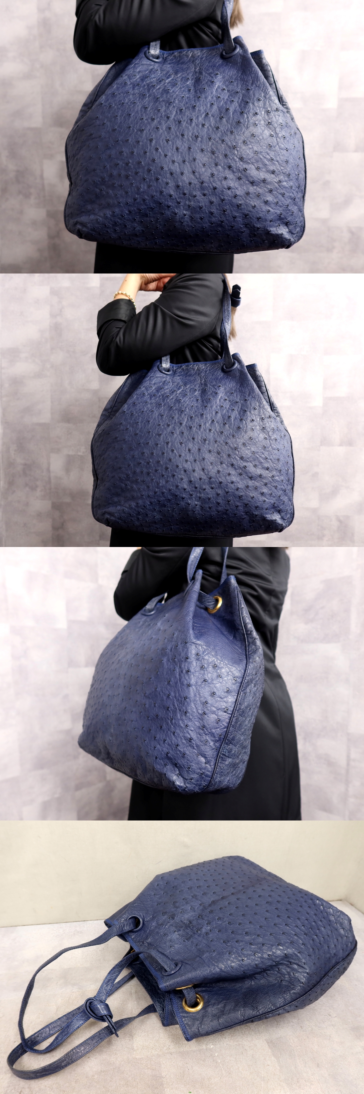 ●超美品●LOEWE ロエベ●オーストリッチ 本 ダチョウ 革●トート バッグ●ブルー●ゴールド金具●肩掛け●ヴィンテージ●A4 収納●Js65151 收藏