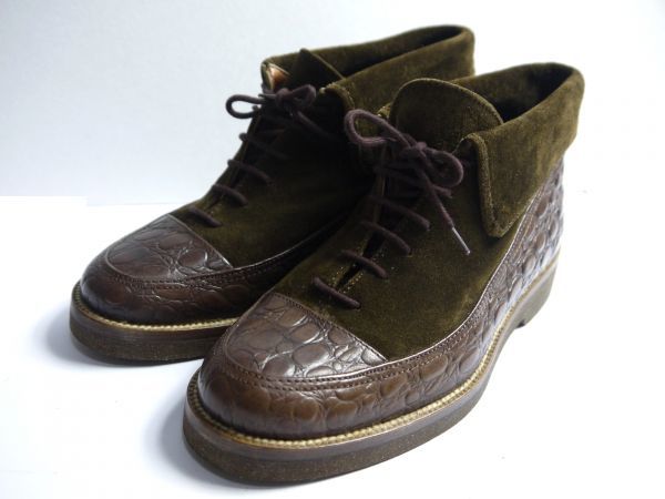 美品 チェーザレ パチョッティ Cesare Paciotti ショートブーツ 5 23.5cm イタリア製 クロコダイル Q823-90 收藏