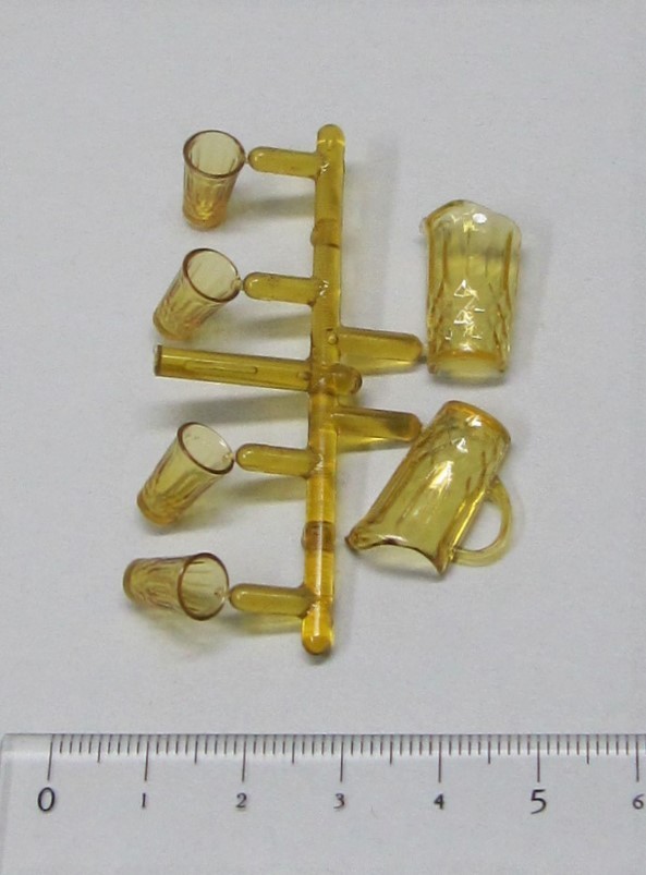 12分の1サイズ、ピッチャーとグラス4個のプラスチック製キット。完成時のピッチャーの高さ約2cm、グラスの高さ約1cm。クリスボン社 アメリカ製。パーツは外れやすく作られておりますので、輸入時に外れていることが多く見本のように一体とはなっておりません。プラスティック製ですので外れた後ににバリが残ります。 細かいヤスリなどで仕上げてください。またメーカー提供の完成見本の写真にも写っておりますようにカップの縁に外したあとが残ります。以上、ご了承ください。何か疑問点がありましたらご購入前にお気軽にご質問ください。、!ショッピング併売品です。当店はストア出店ですのでのまとめて取引を利用できません。複数ご購入の場合は!ショッピング店のご利用が便利です。https://store.shopping.yahoo.co.jp/lanternhillshop/
