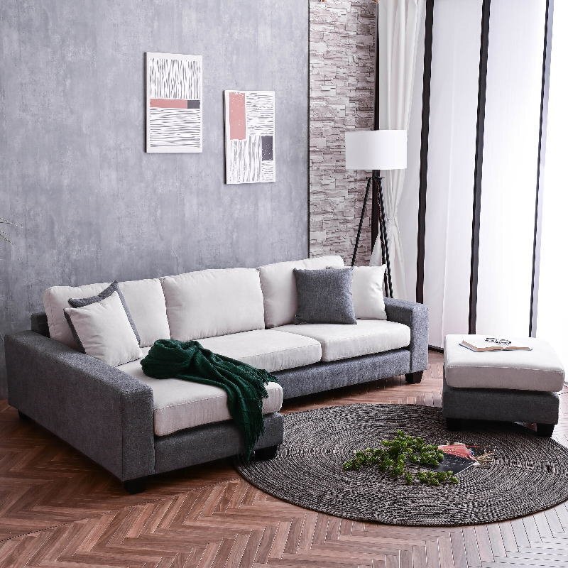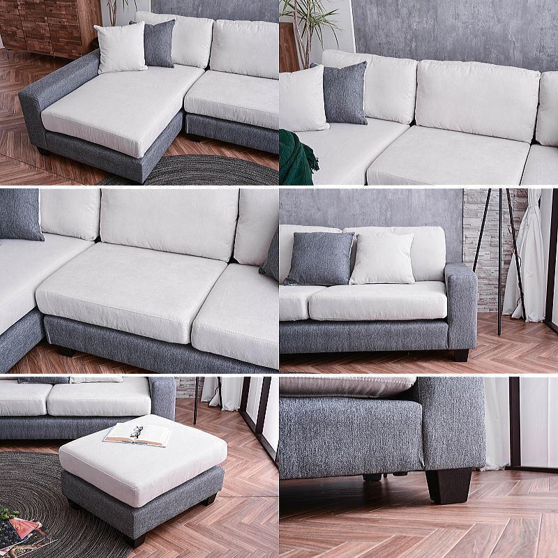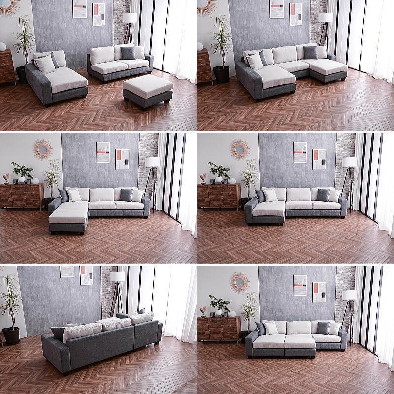 新品 3人掛けカウチソファーIV/DGY色スツール付きセット モダンおしゃれ北欧モダン3Pファブリック布製L字ソファ家具:ST10-10P-ZQ 收藏