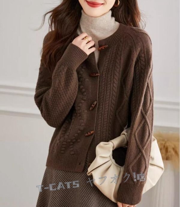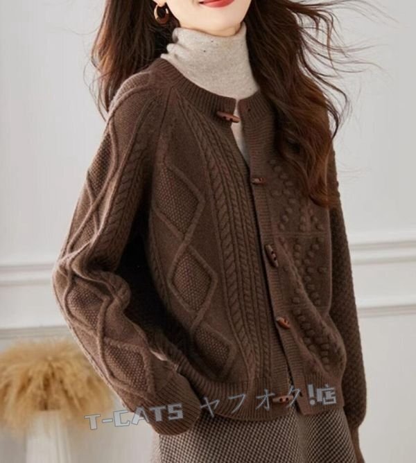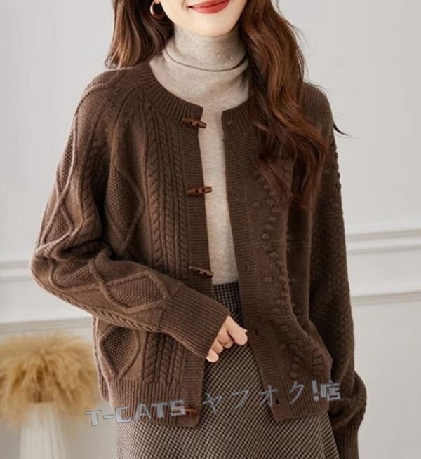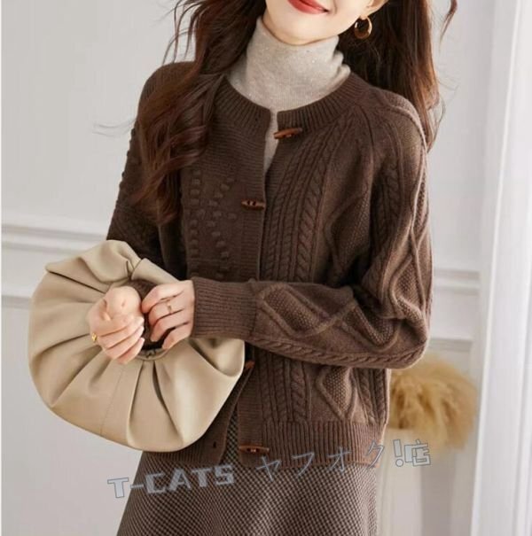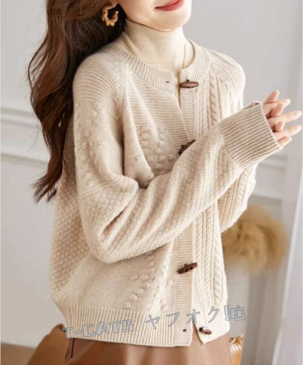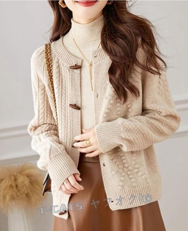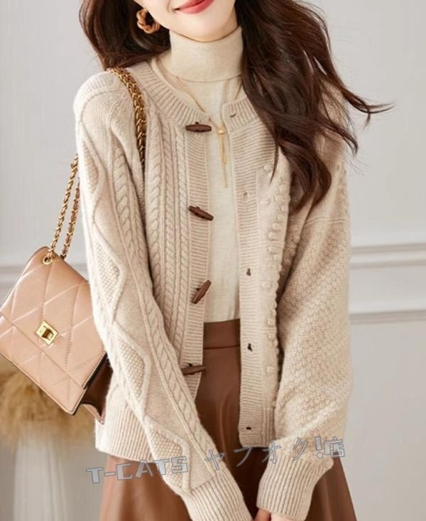 ☆新品秋 ニットカーディガン レディース ニットセーター 長袖 カーディガン オフィス 前開き ケーブル編み ニット アウター ベージュ 收藏