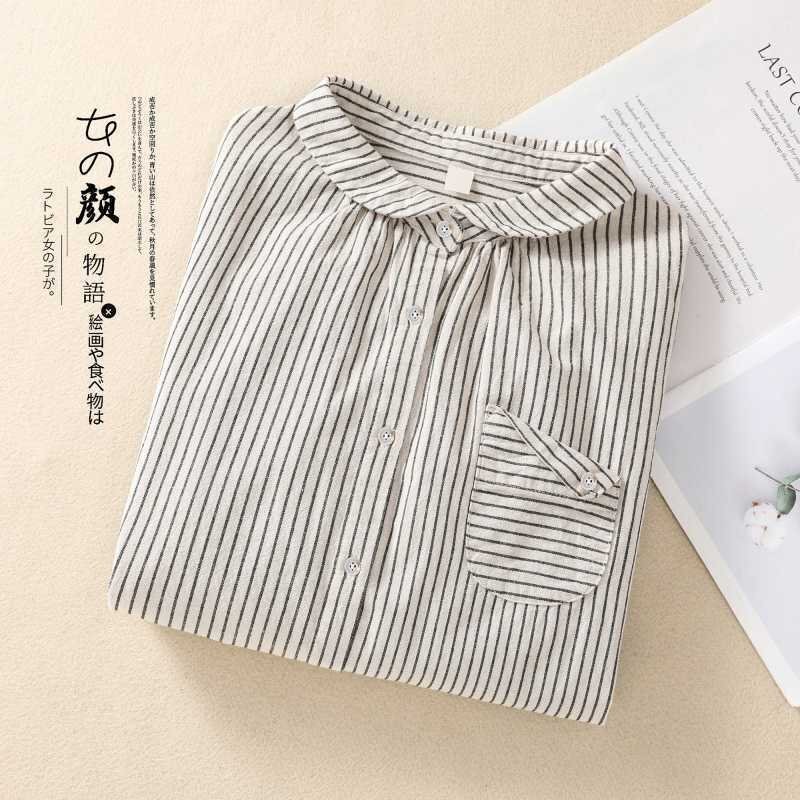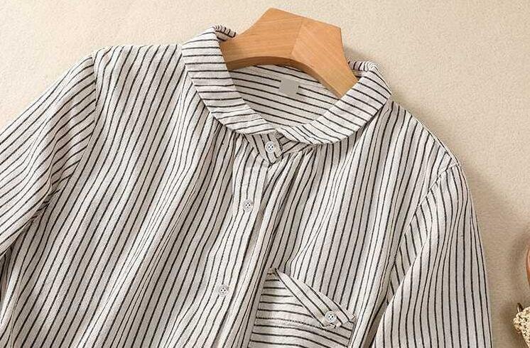 OHJ706★2色秋春シャツ ブラウス レディース チュニックトップス ボーダー柄長袖お洒落 カジュアル風可愛いシャツブラウス ホワイトM-2XL 收藏
