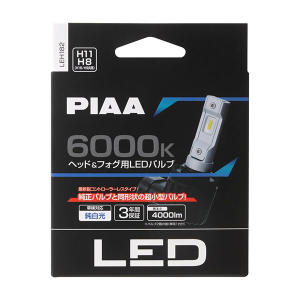 PIAA ピア LEH182 フォグライト用 高輝度LEDバルブ H16 6000K 純白色 ホワイト 4000lm ルノー カングー H25.8~ 純正H4/H16 收藏