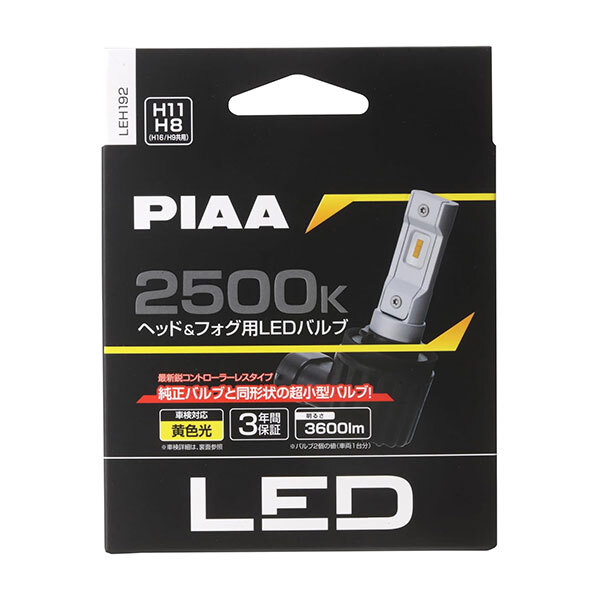 PIAA ピア LEH192 フォグライト用 高輝度LEDバルブ H11 2500K 黄色 イエロー 3600lm ルノー トゥインゴ N#系 H20.11~H24.6 純正H4/H11 收藏