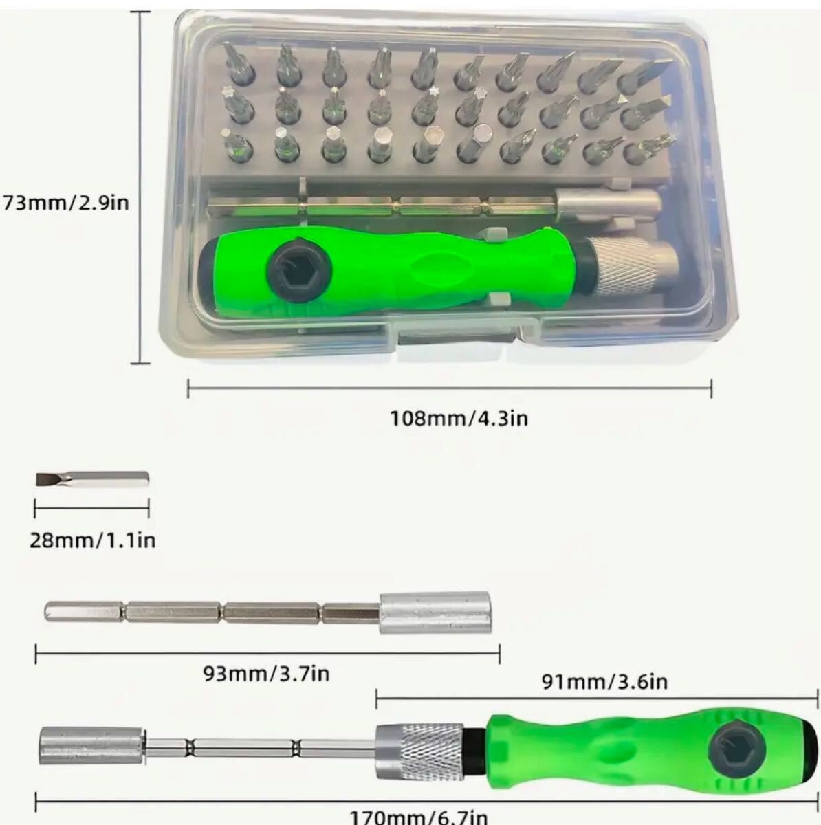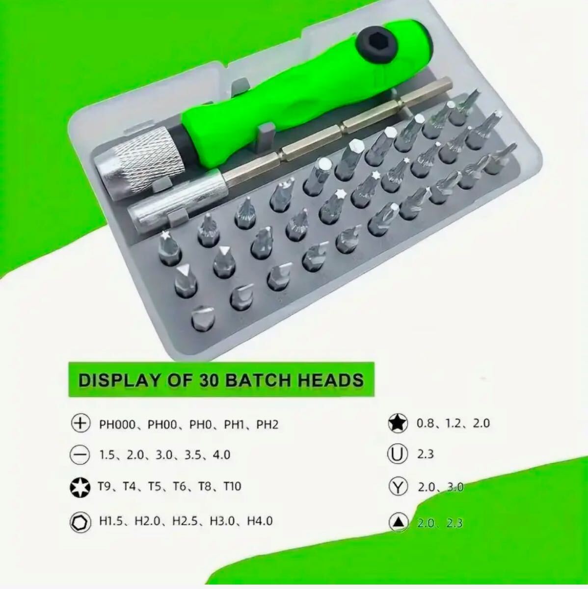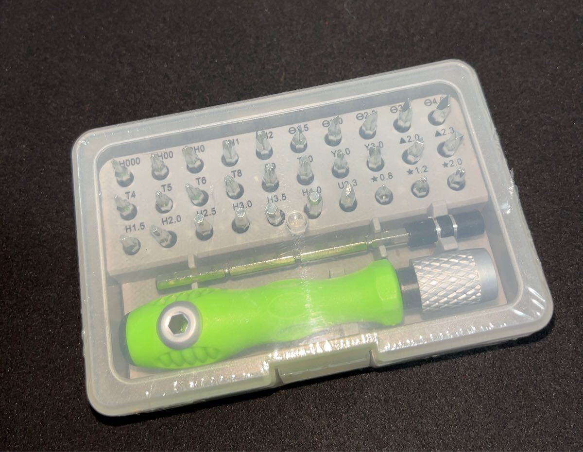 多目的ミニツールキット 精密ドライバーセット 32個 ビット付属 収納ケース付き グリーンハンドル 收藏