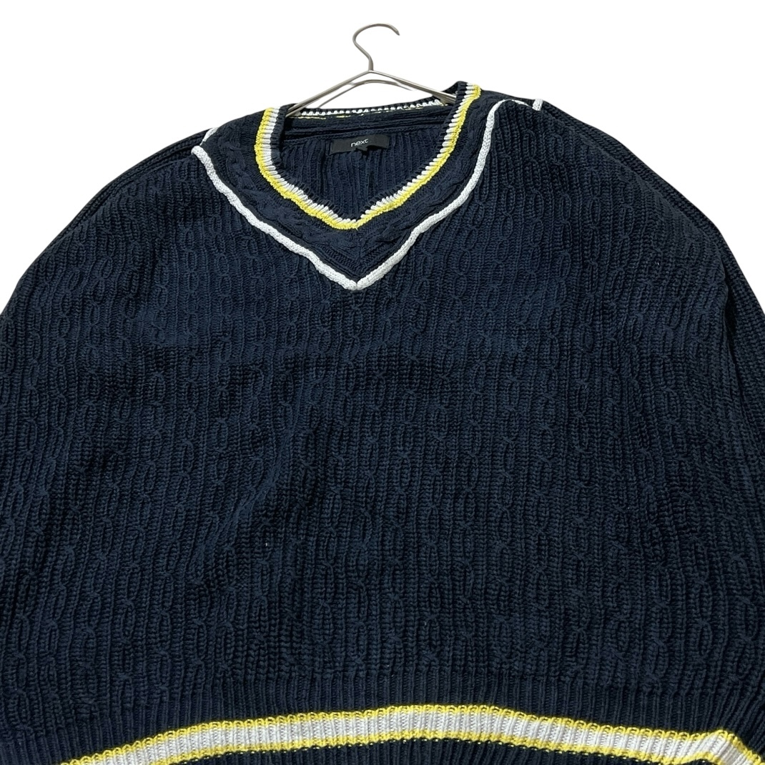 US古着 クリケットセーター ニット Vネック ネイビー コットンv73 XL相当 收藏