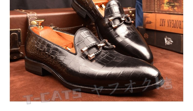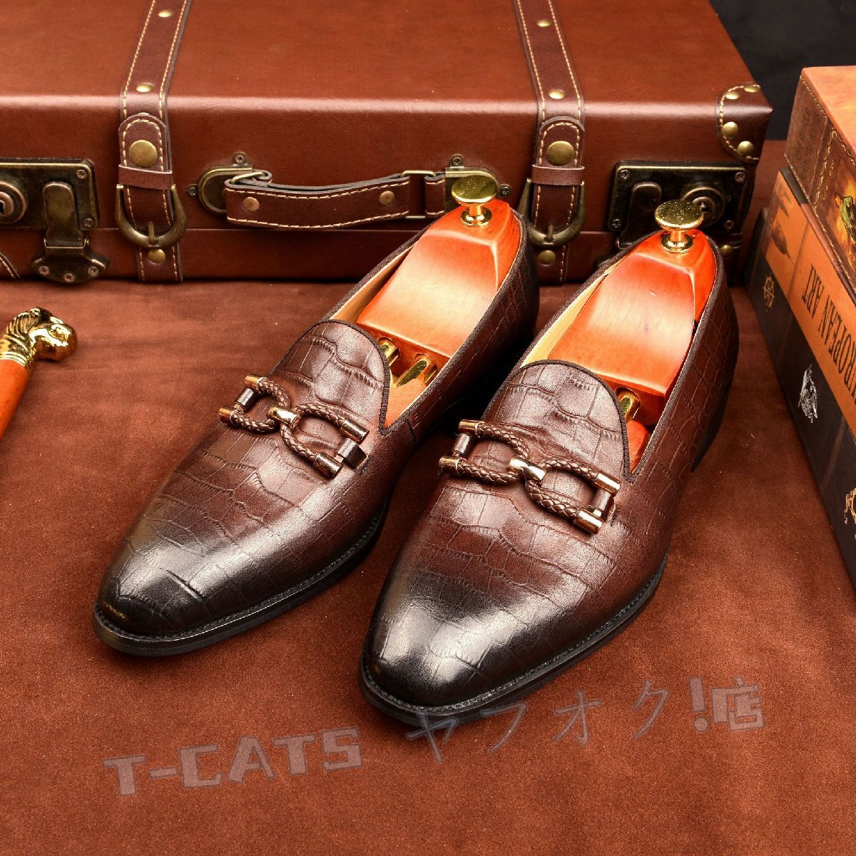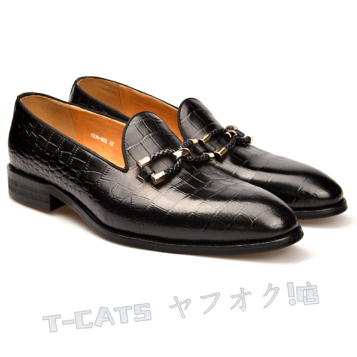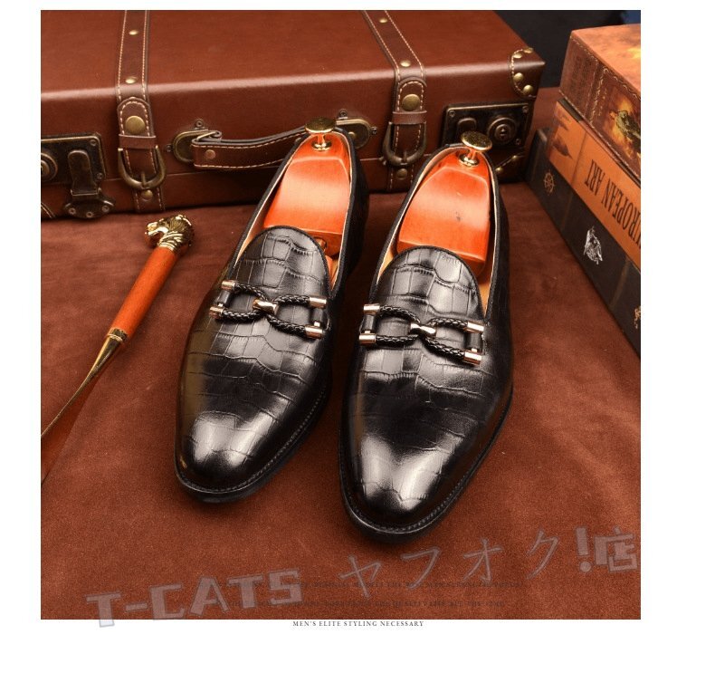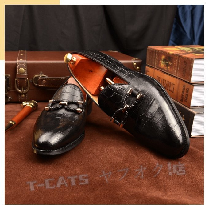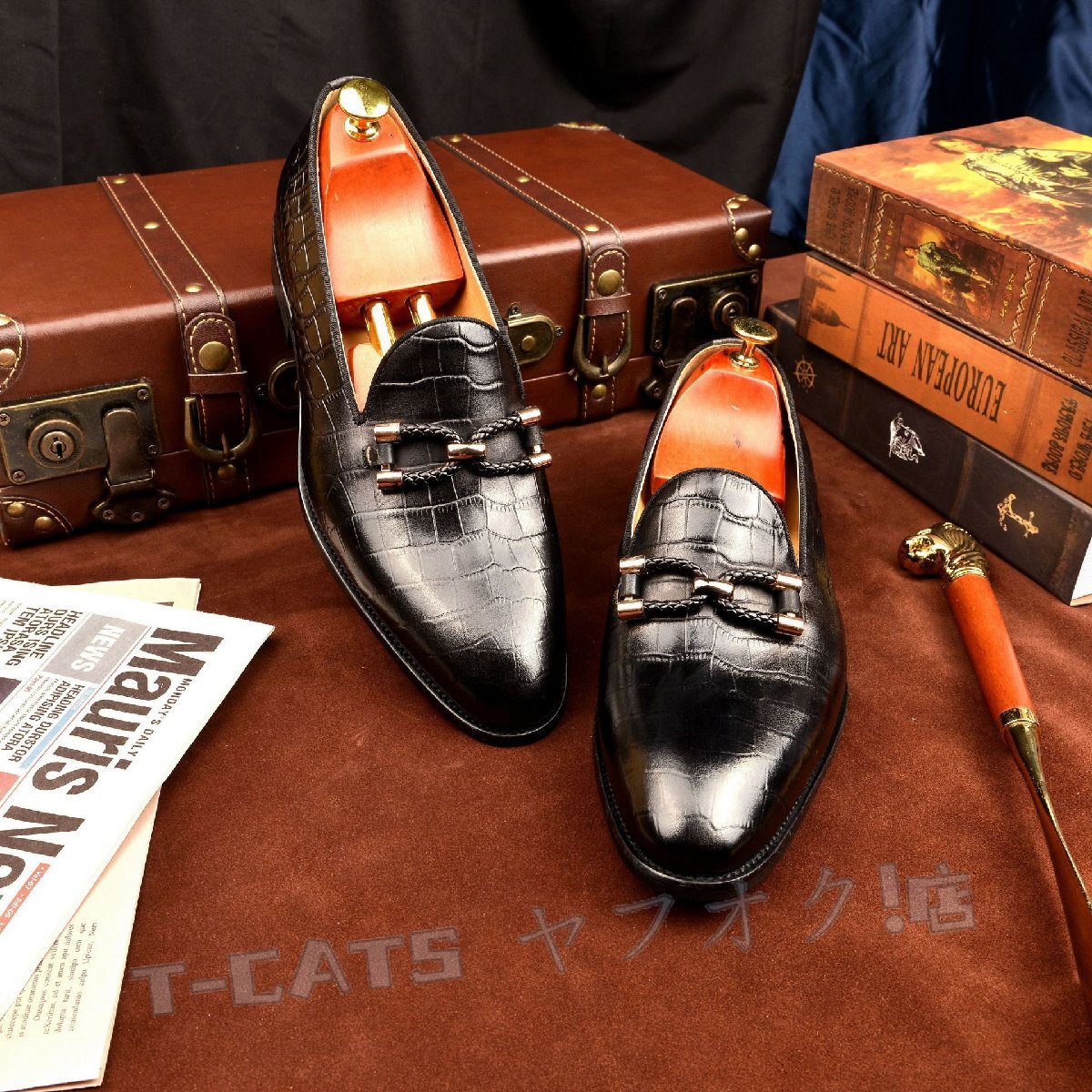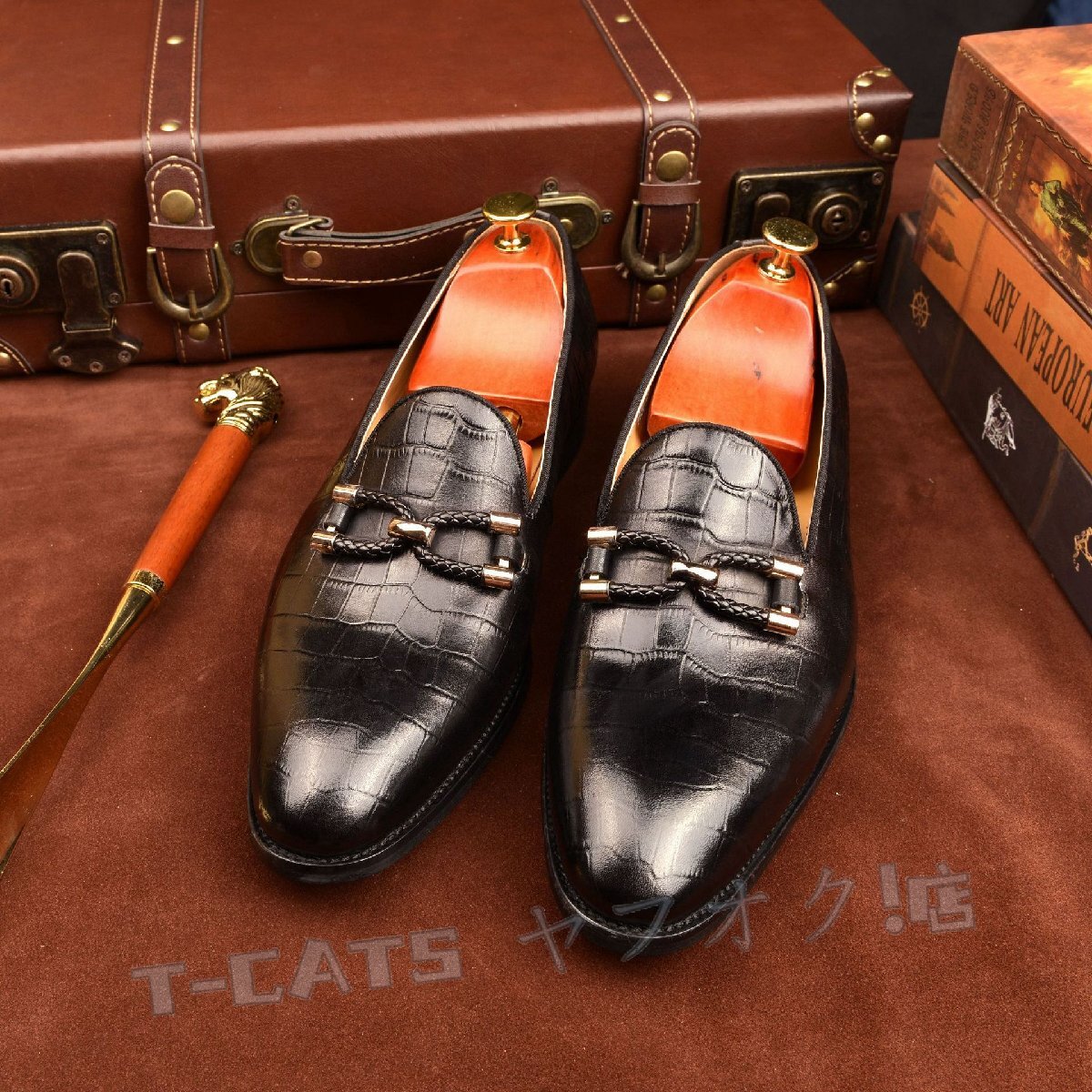 ☆新品牛革 メンズシューズ 本革 ビジネスシューズ 鰐柄 職人手作り レザーシューズ ビットローファー フォーマル ブラック24~28cm 收藏