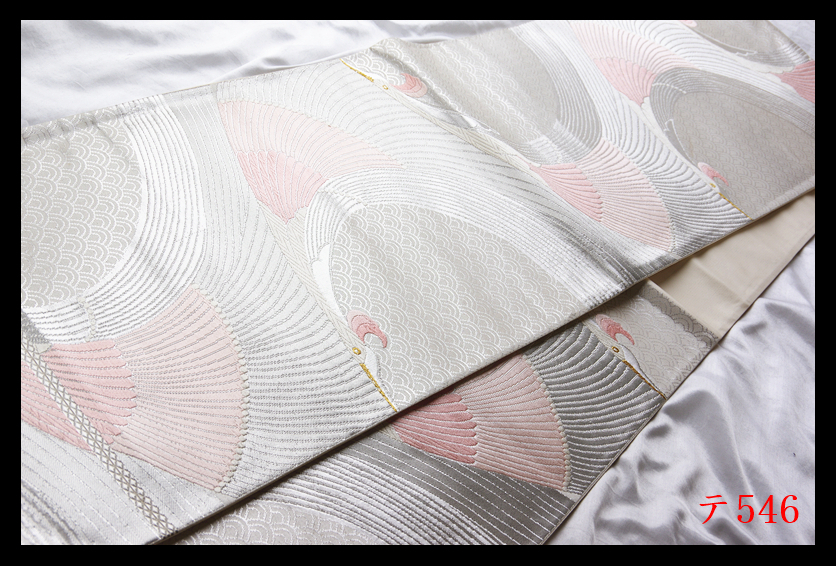 蔵【テ546】西陣美品 孔雀紋 シルバー色地 気品豊かに 正絹六通高級美術袋帯 ◇検簪着物名古屋帯和装小物帯締め 收藏