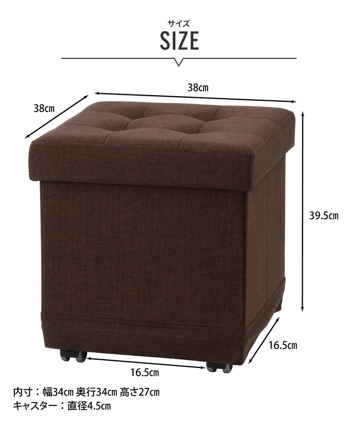 スツール 収納 キャスター付き 38×38cm 正方形 収納スツール 収納ボックス 腰掛け オットマン 折りたたみ ブラウン M5-MGKFGB00438BR 收藏