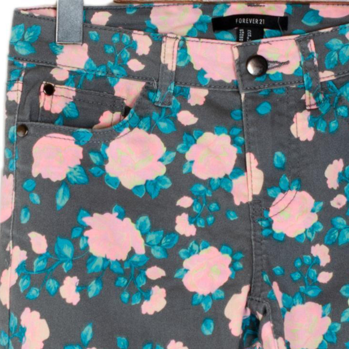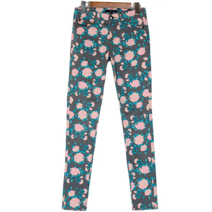 forever21 フォーエバー21 花柄スキニーパンツ 薔薇 US25インチ 総柄 グレーピンク 收藏