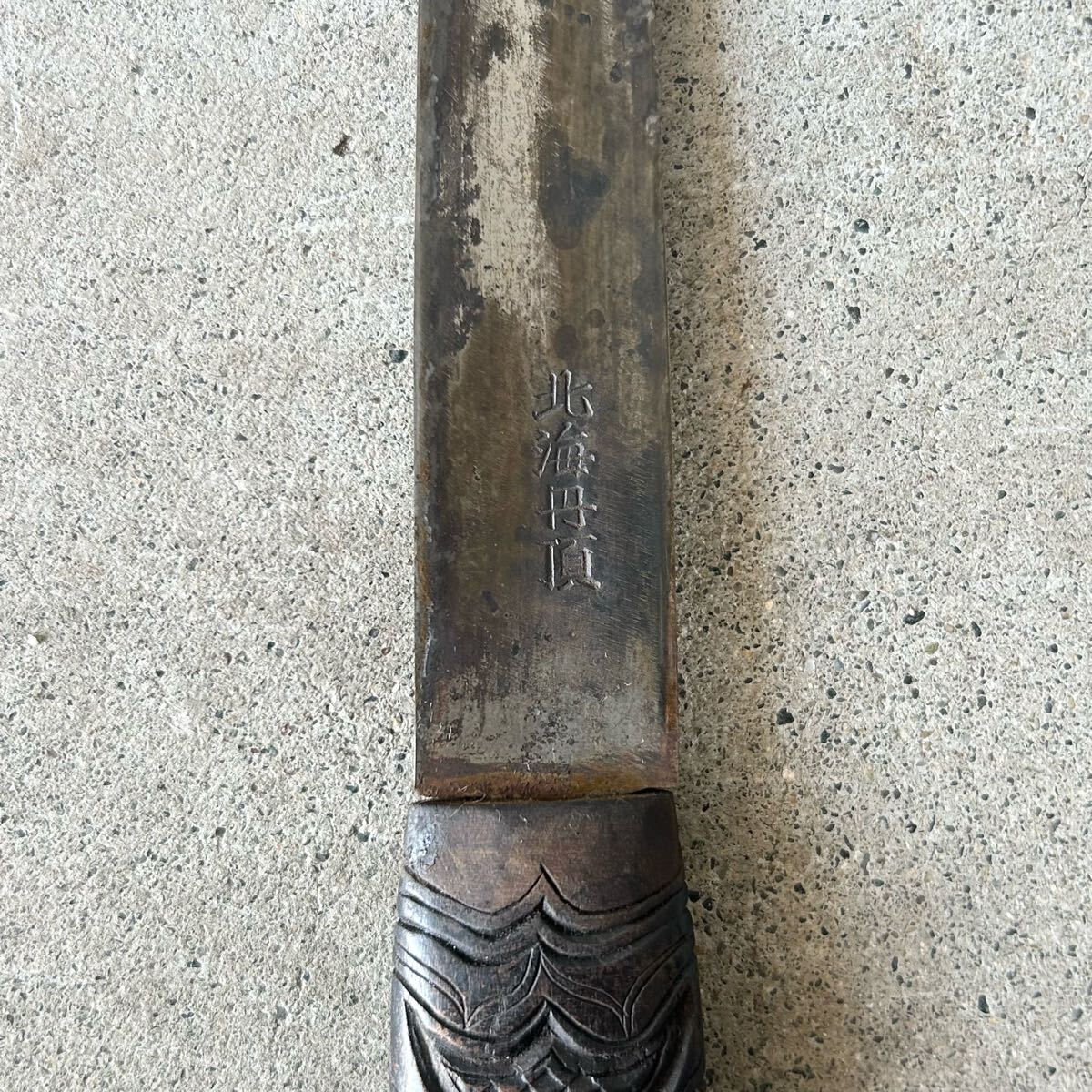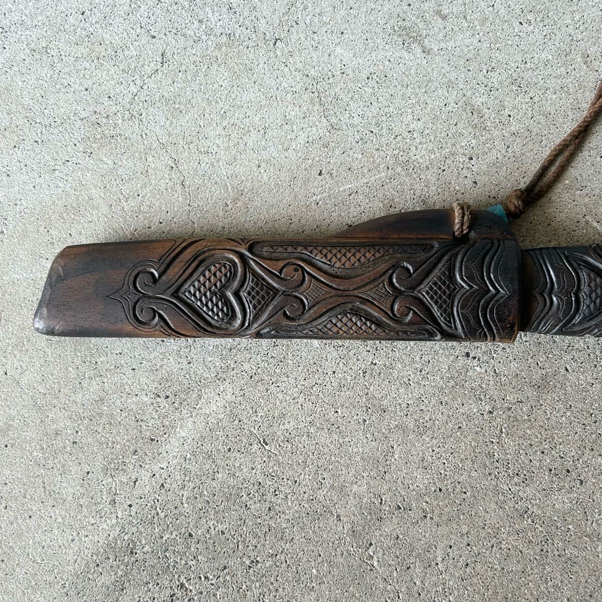 | ■商品名 アイヌ民族 マキリ 木彫 蝦夷拵 細密彫刻 民族美術 狩猟刀 時代 ナイフ コレクター収蔵品 v2 【状態】