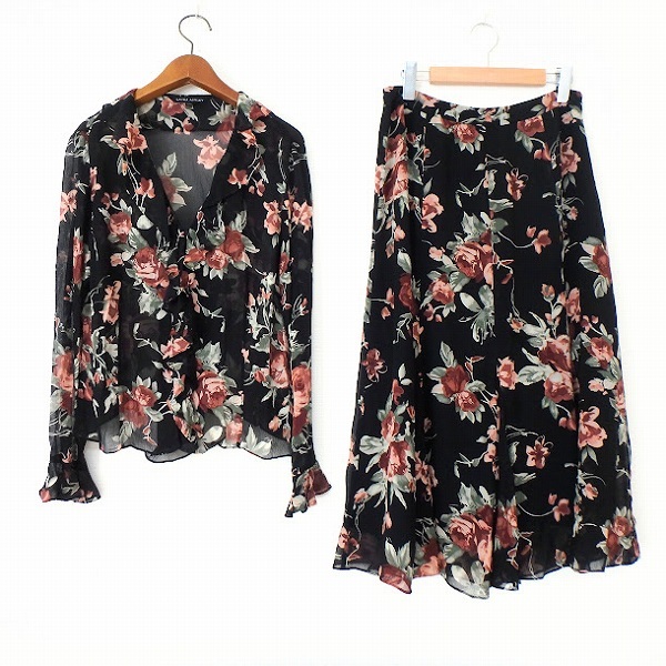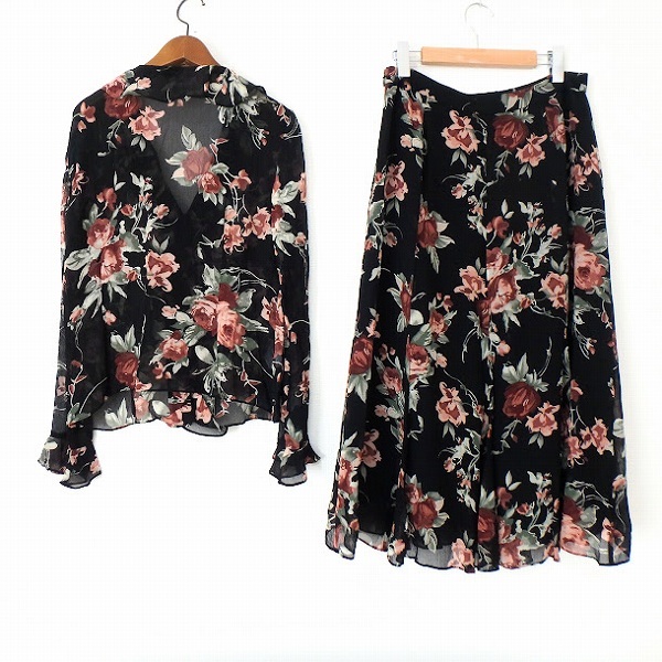 #anc ローラアシュレイ LAURAASHLEY セットアップ 11 黒 緑 赤 ツーピース シースルー 花柄 サイドファスナー シルク レディース [922951] 收藏