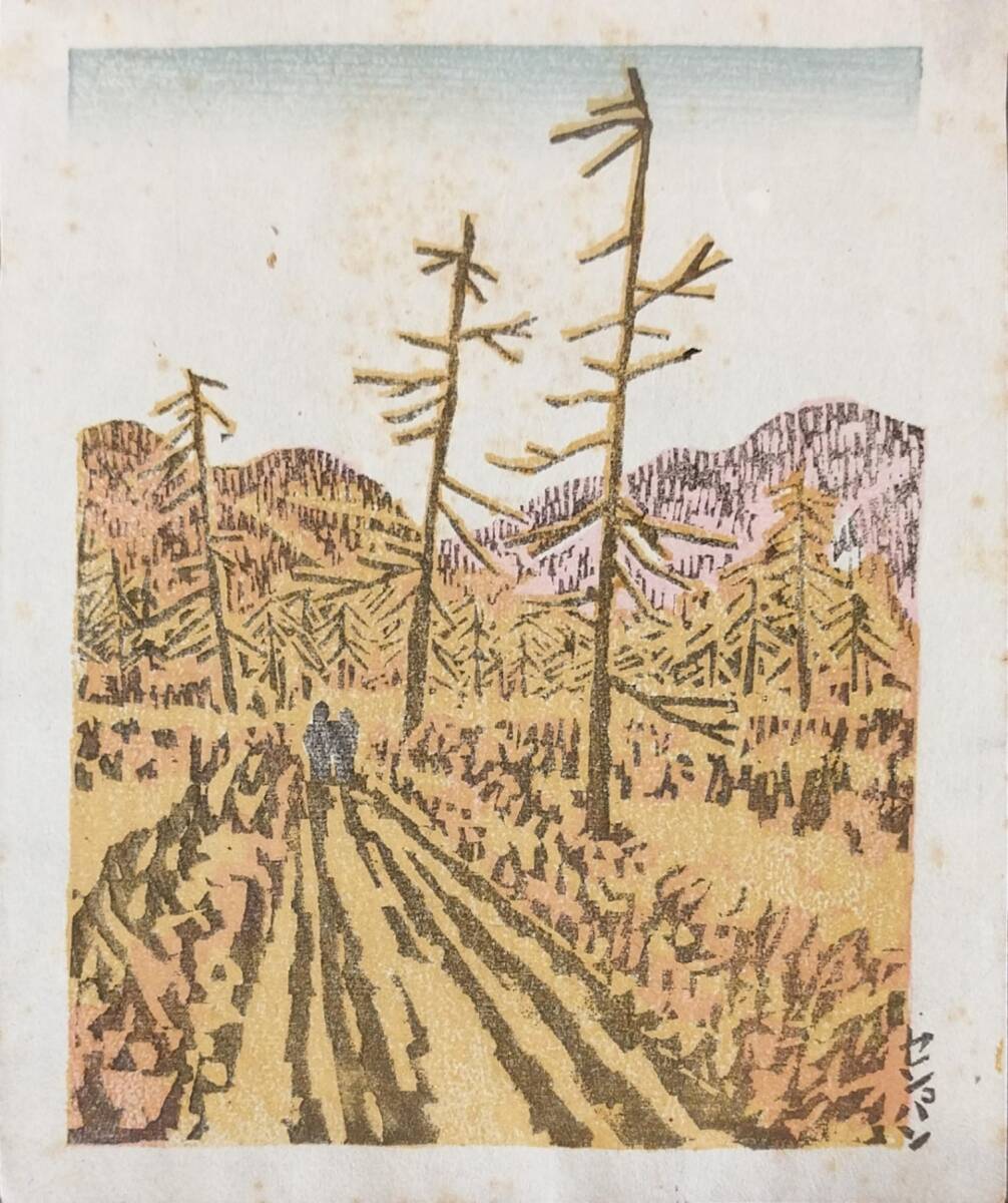 『前川千帆 オリジナル木版画 日光戦場ヶ原 約17cm×14cm』高見澤本社版 版上サイン有 收藏