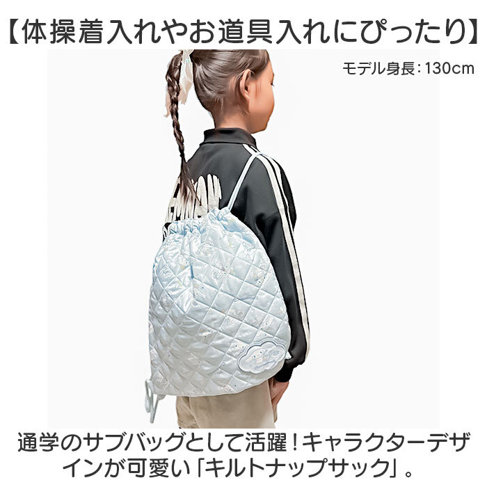 | 商品説明 | ・・【体操着入れやお道具入れにぴったり】 ・通学のサブバッグとして活躍!キャラクターデザインが可愛い「キルトナップサック」。 ・【大人気のキャラクターが集合☆】 ・男の子も女の子も好きなキャラクター柄を、全面にプリント。一緒に登下校できて気分もアップ。 ・【こっそり名前を書けるワッペン】 ・表面下部に配置されたワッペン。めくると内側に名前を記入でき、お友達とお揃いでも大丈夫◎ ・(※1)ナップサック内側にも、ネームタグ付きです。 ・【ふんわり柔らかく軽やかなつくり】 ・ふっくらキルト生地を採用。体に負担がかかりにくく、小さなお子さまにも最適。 ・【キュッと絞れる巾着タイプ】 ・サイドの紐を絞れば、中身の飛び出しをガード。ガバっと開いて出し入れもスマート。 ・【ざっくり収めて使いやすいサイズ】 ・A4対応で、ランドセルに入りきらない荷物を収納するのに重宝。 ・(※2)紐の絞り具合により、A4が入らない場合もあります。 ・【お子さまの成長に合わせて使える】 ・紐の結び目を変えて、長さを調節。長めにすると、ランドセルの上からも背負えて便利! ・【お好みでスタイルチェンジもOK】 ・上部には持ち手を装備。手持ちしたり、机の横に掛けておくこともできる仕様。 ・【手洗いできてお手入れラクラク】 ・汚れが気になったら、自宅で手洗い。いつも清潔をキープできるのが嬉しい! ・【入園・入学・新学期準備におすすめ】 ・お気に入りがきっと見つかるバリエーション!新生活の準備アイテムにリストアップ☆ |