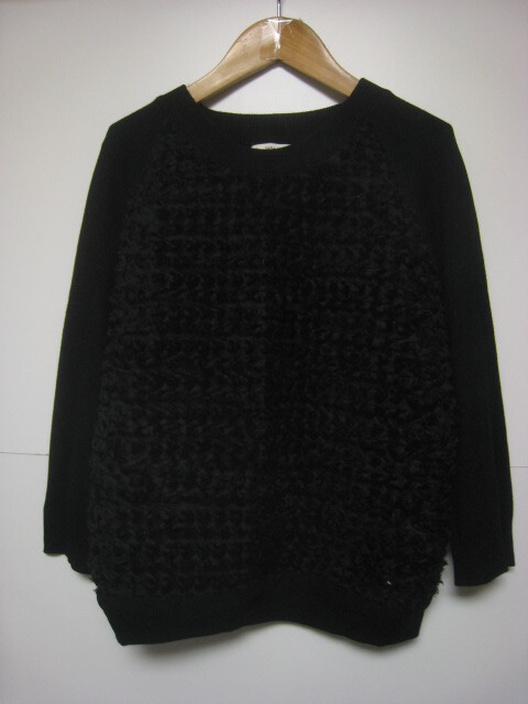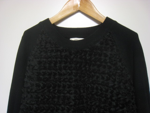☆ ZARA KNIT ザラニット 七分袖 切替ニットプルオーバー レーヨン混 SIZE:M BLK ☆ 收藏