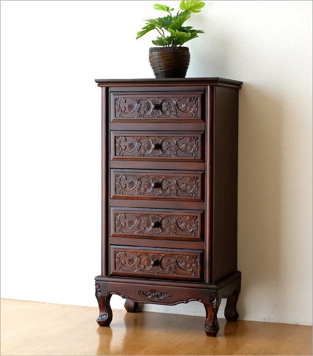 アンティーク 家具 収納 チェスト 収納家具 タンス たんす 猫脚 完成品 アンティークなスリム五段チェスト 收藏
