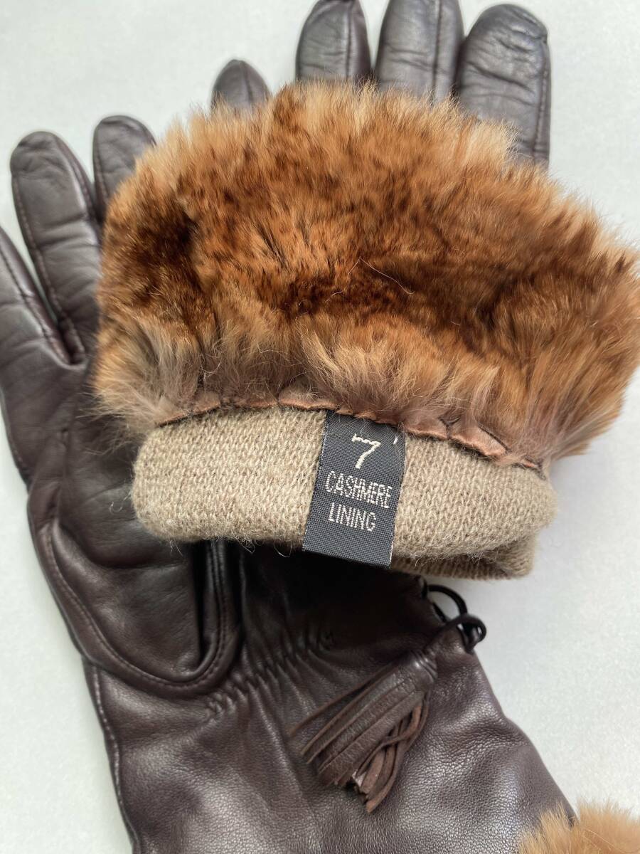 【美品】イタリア製 Gloves レディース レザーグローブ 革手袋 ダークブラウン サイズ7 カシミア裏地 オリラグファー付き 收藏