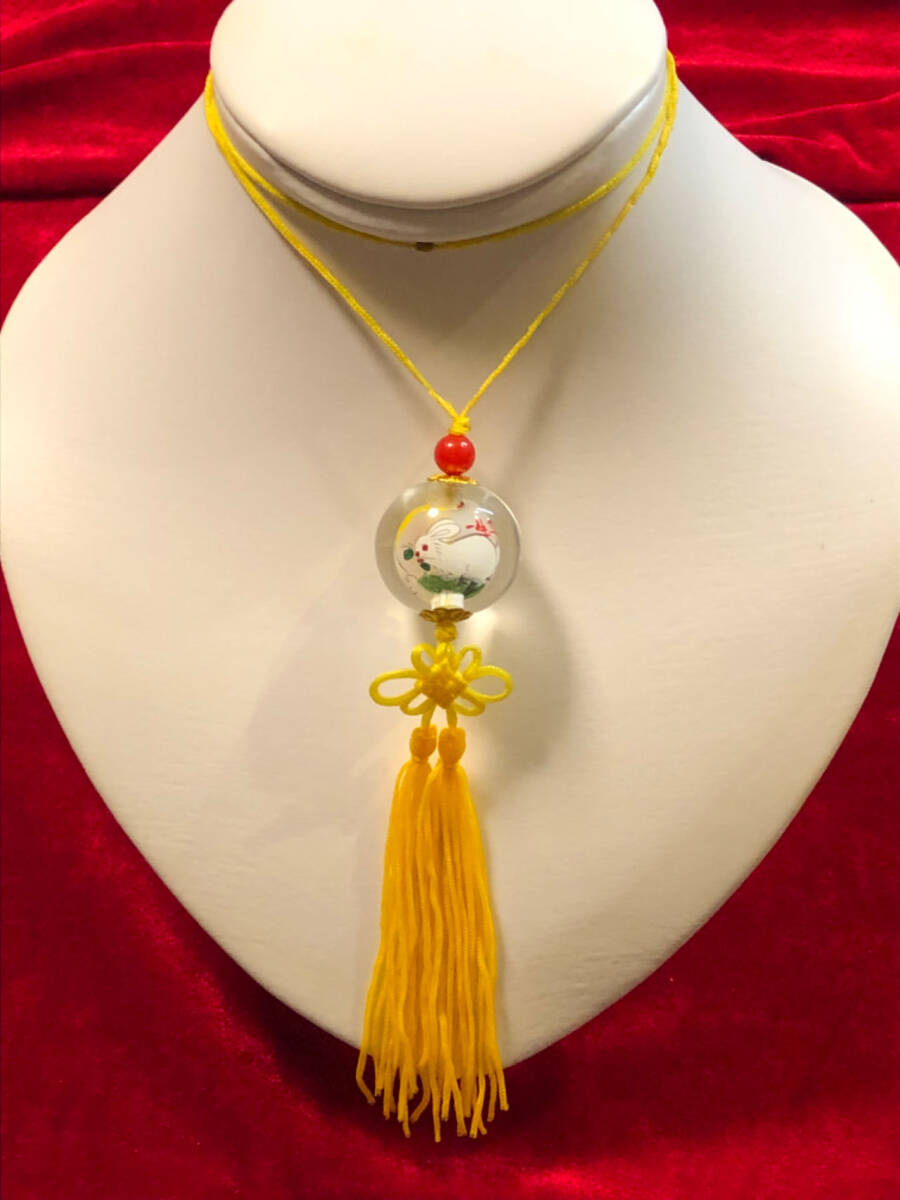 ※ ガラス細工・内絵干支観音菩薩ストラップ4卯兎 ※ 多子多福 商売繁盛 吉祥平安 お守り 紐縄結び ストラップ 掛け飾り 收藏