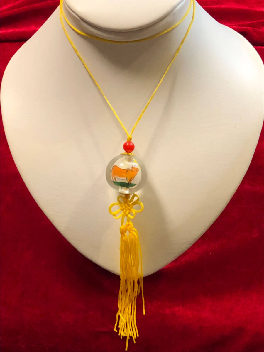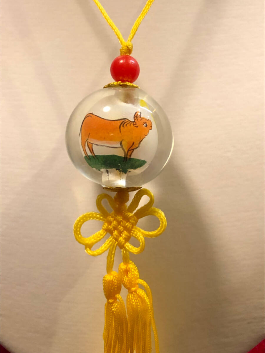 ※ ガラス細工・内絵干支観音菩薩ストラップ2丑牛 ※ 多子多福 商売繁盛 吉祥平安 お守り 紐縄結び ストラップ 掛け飾り 收藏