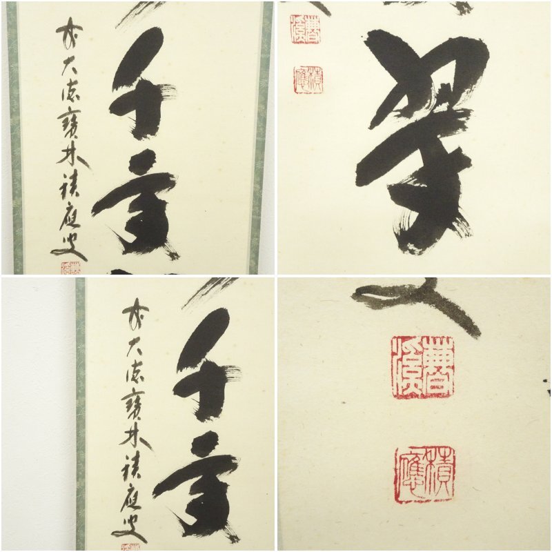 前大徳 福本積應筆 「松樹千年翠」一行書 肉筆紙本掛軸(共箱) 收藏