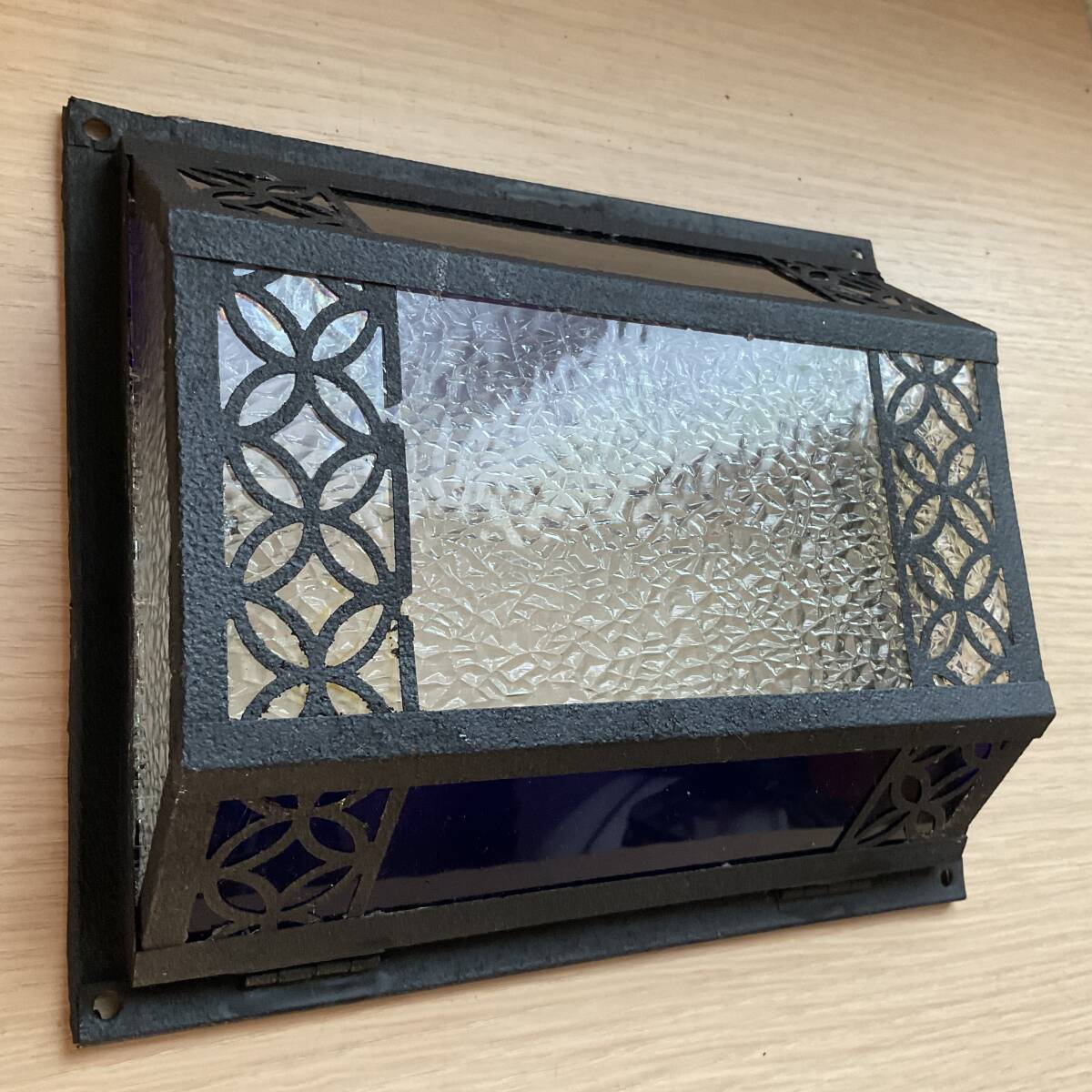 即決【大正浪漫びいどろ屋】青色平板ガラス入り七宝文壁灯カバー アンティーク シェード リフォーム 古民家 カフェ 收藏