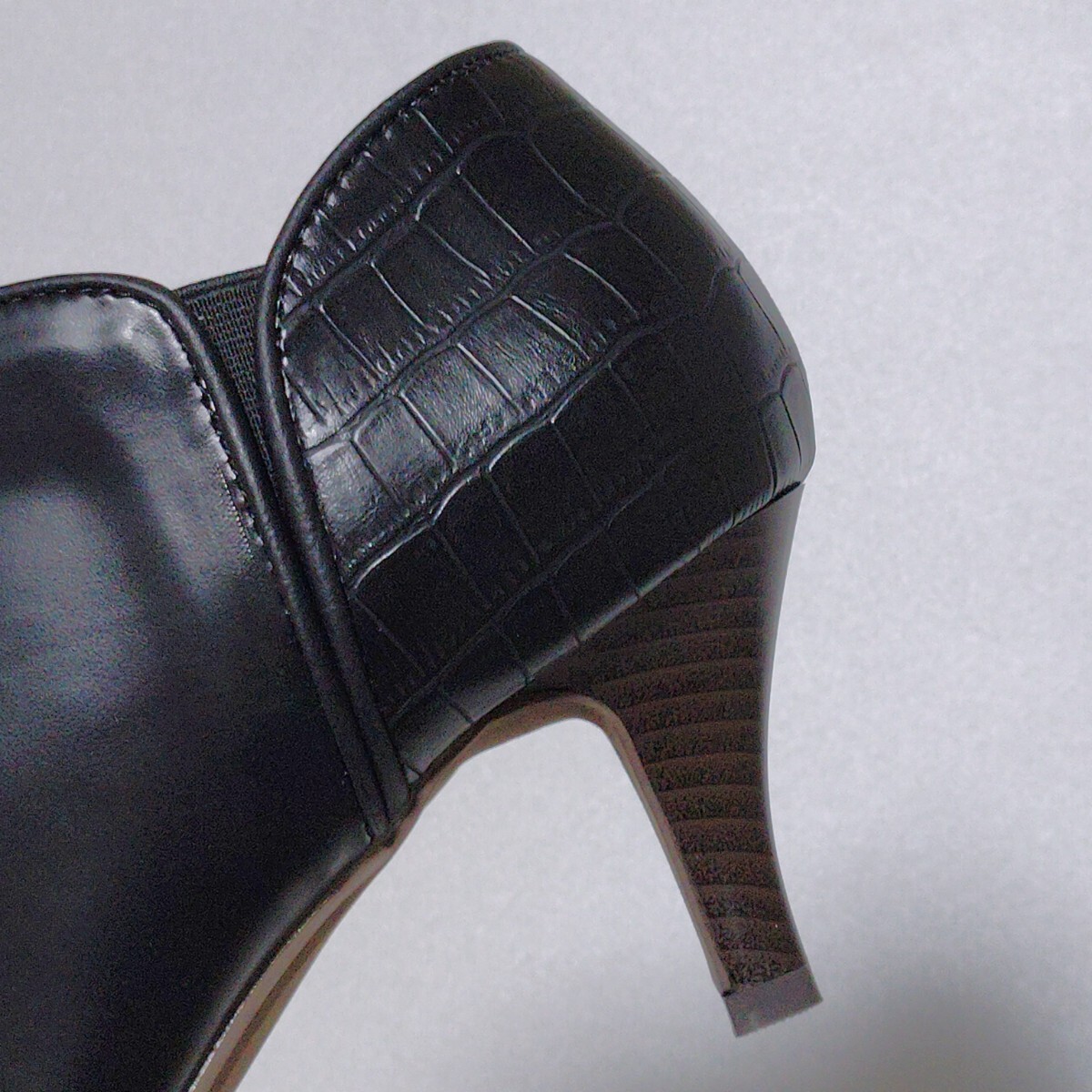 M 新品 ブーティ ショート ブーツ クロコ 黒 ブラック 23 〜 23.5cm ピンヒール ハイヒール 6.5cm バイカラー 收藏
