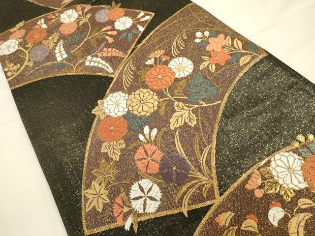平和屋着物◎六通柄袋帯 唐織 地紙花文 黒地 金糸 正絹 逸品 CAAV3352ft 收藏