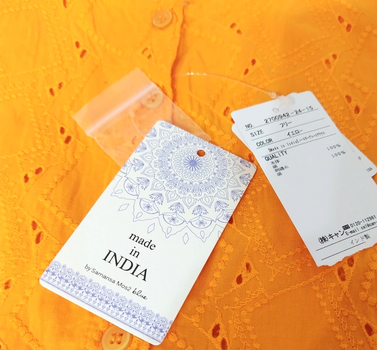 サマンサモスモスブルー 【Made in India】ノースリーブレースブラウス新品イエロー 今季完売 收藏