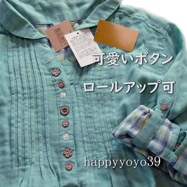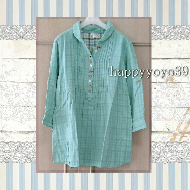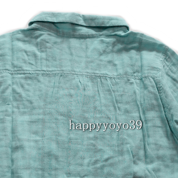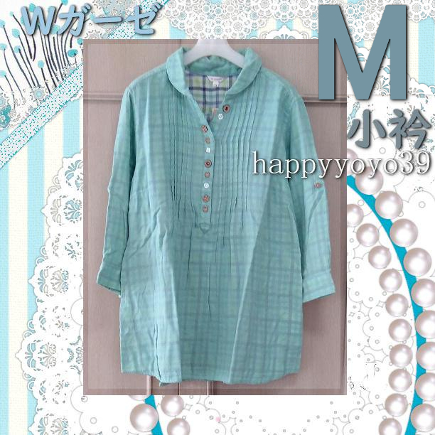 激安 新品 M セージ ダブルガーゼ 小衿 シャツブラウス 七分袖 チュニックコットン ガーゼ素材 オーバーブラウス ミセス ナチュラル 收藏
