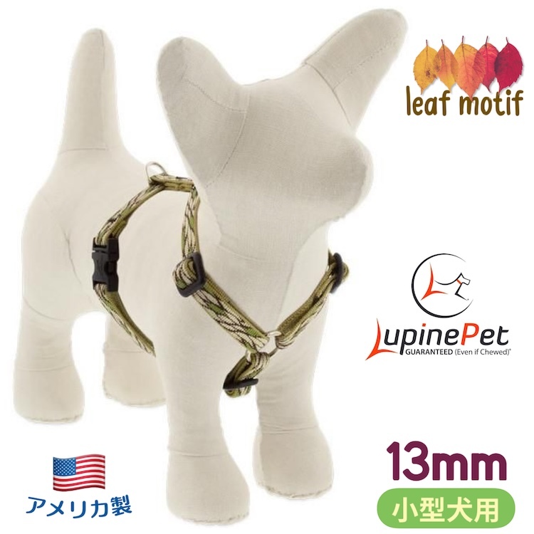 リーフモチーフ柄・ローマンハーネス・小・胴回り23-35cm・13mm幅 LUPINEルパイン アメリカ製 軽量丈夫 小型犬 Leaf motif 收藏