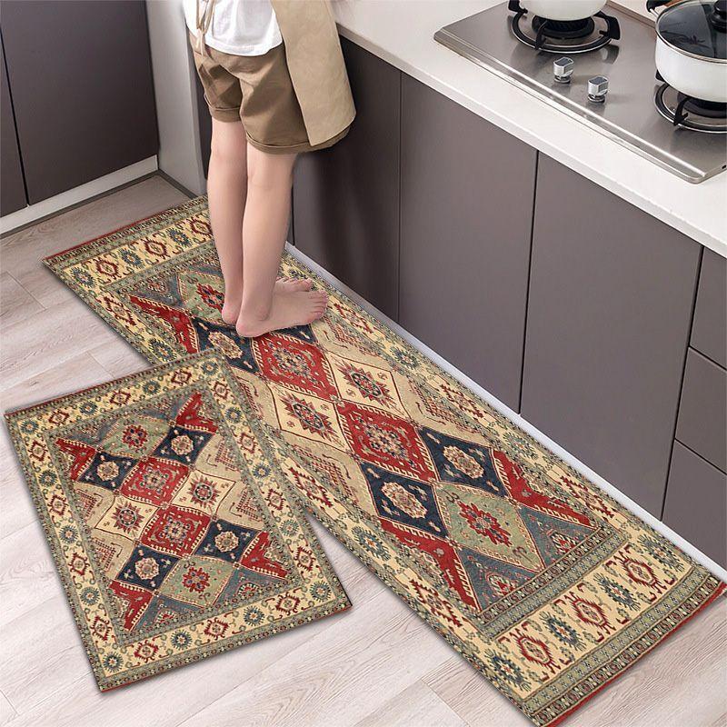 キッチンマット 2枚セット 北欧風 玄関マット バスマット 滑り止め耐水 エスニック柄A 模様替え おしゃれ 爽やか 防水 アジアン雑貨 收藏