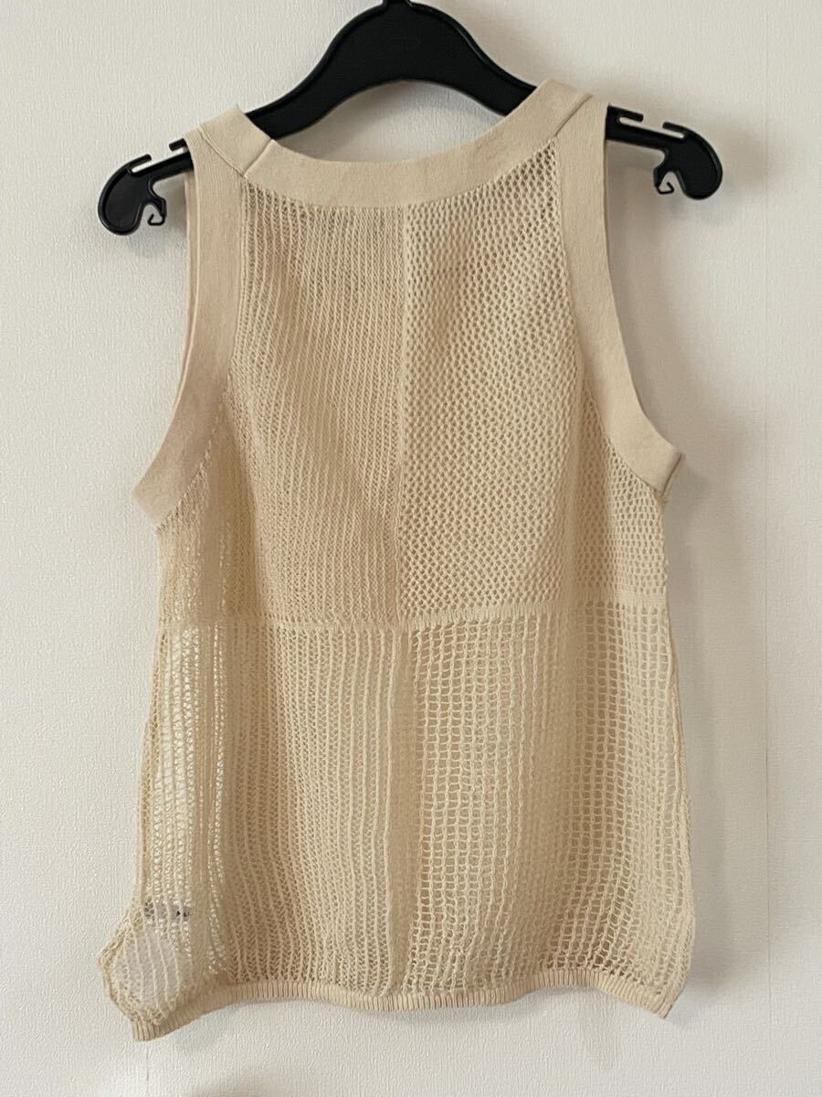 メクル MECRE タンクトップ ノースリーブニット シアー コットン 白系 ベスト トップス 收藏