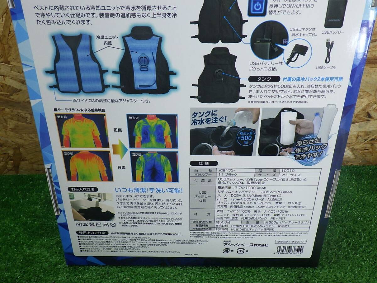フリーサイズ★アタックベース(Atackbase) 冷水が循環するベスト(男女兼用) ブラック 10010 11 F 未使用品 250819 收藏