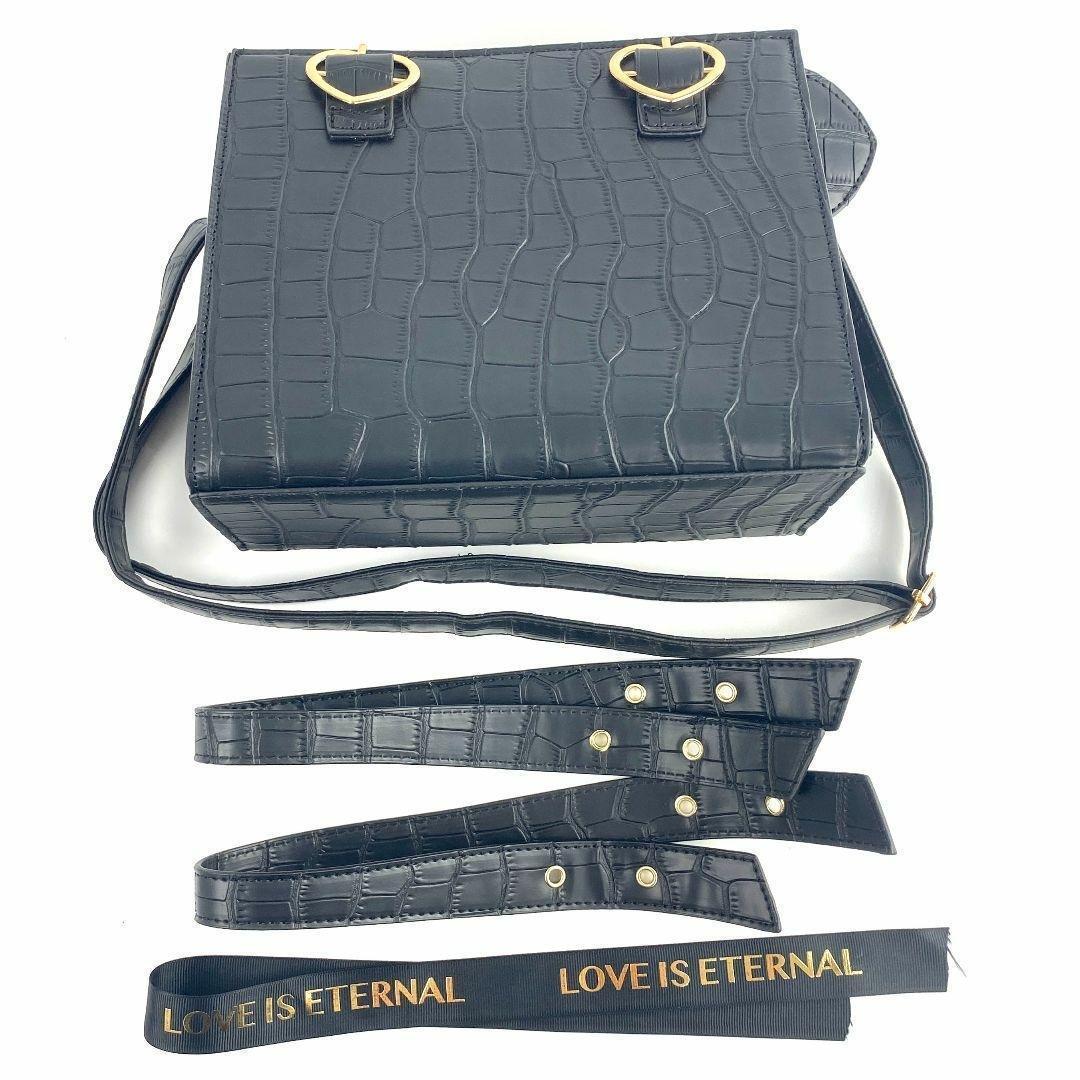 【新品】バッグ 黒クロコ柄 高級感 透明窓付き2way 万能ミニトート 人気 收藏