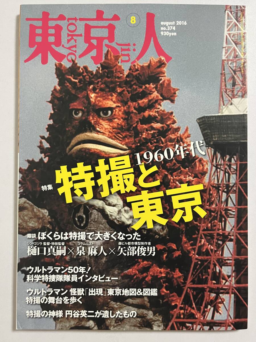 【東京人】2016年8月号(No.374)特集『特撮と東京 1960年代』(樋口真嗣、泉麻人、科学特捜隊隊員インタビュー、円谷英二など) 收藏