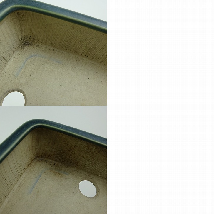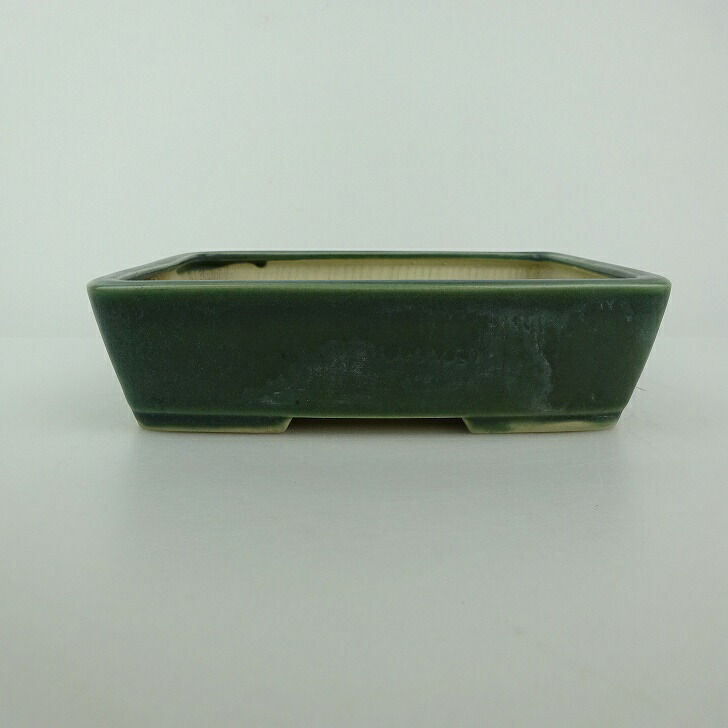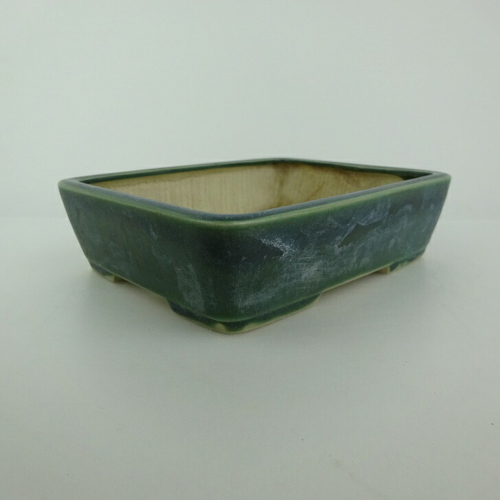【中古】盆栽鉢 青香 小型 長辺 約 14.8cm 長方鉢 釉薬 現品 中古鉢 收藏