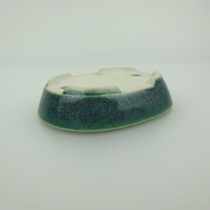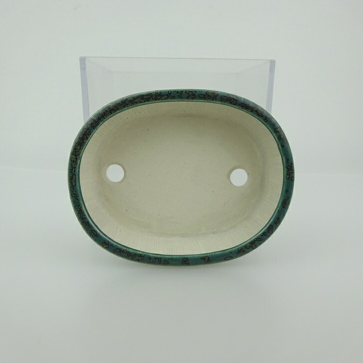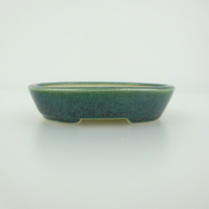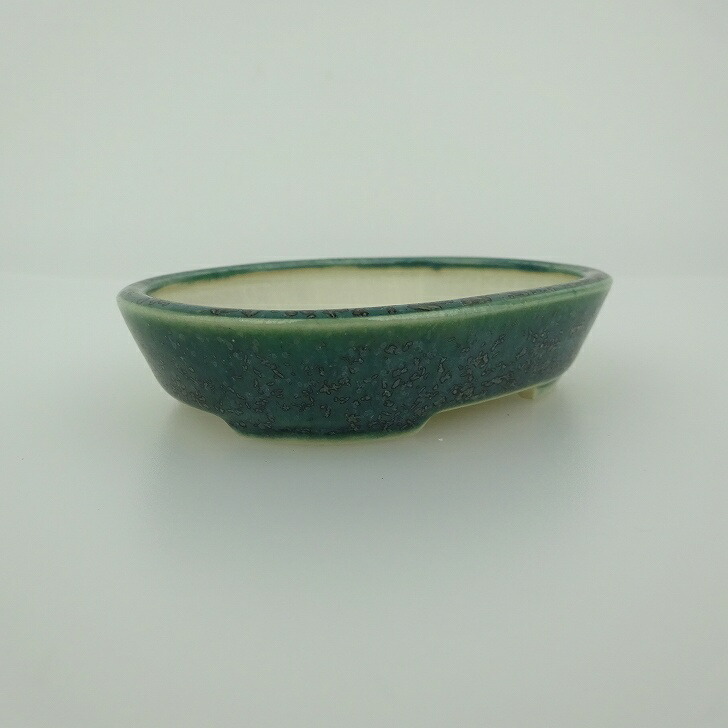 盆栽鉢 青香 小鉢 長辺 約8.4cm 楕円鉢 釉薬 現品 收藏