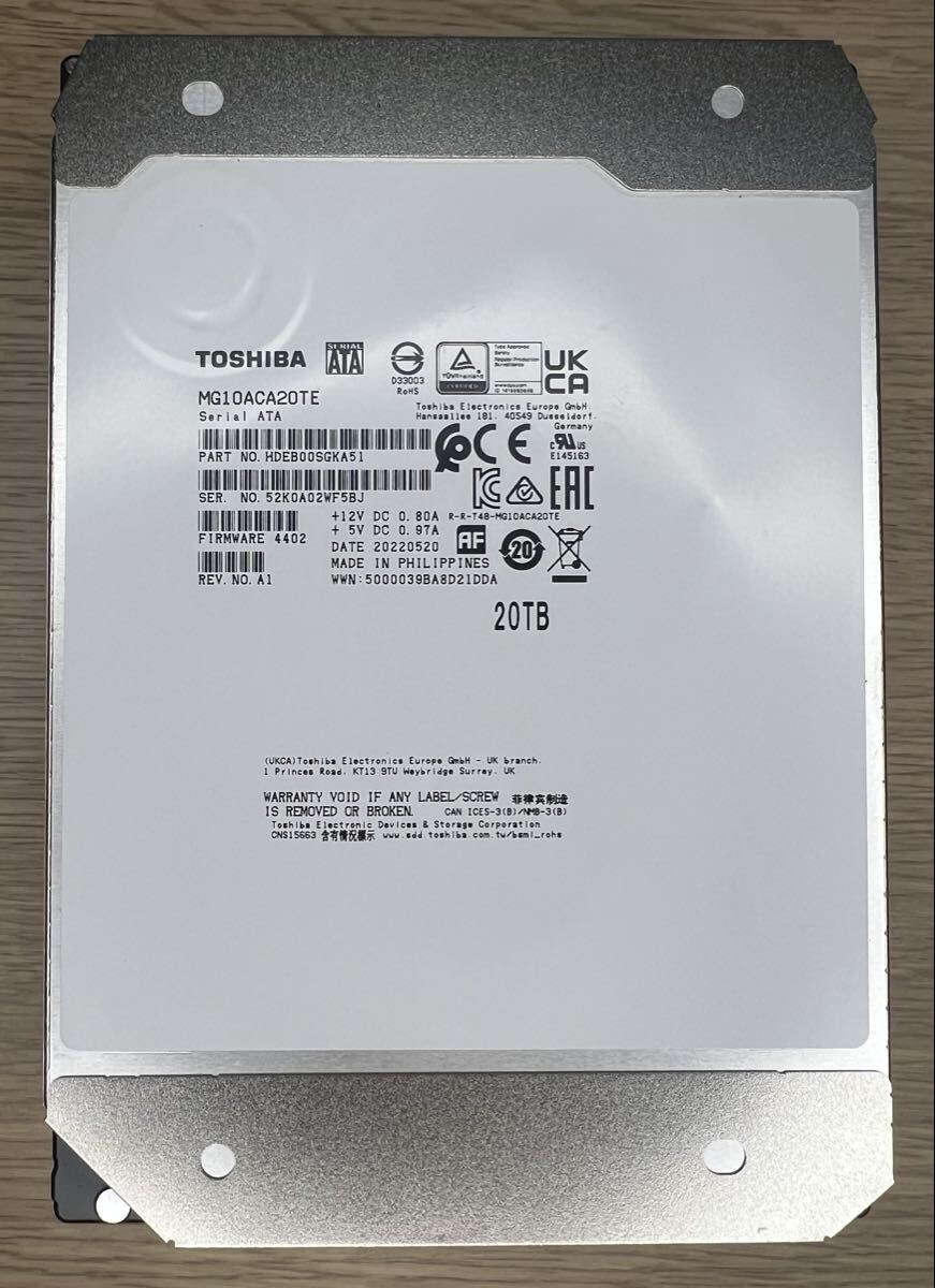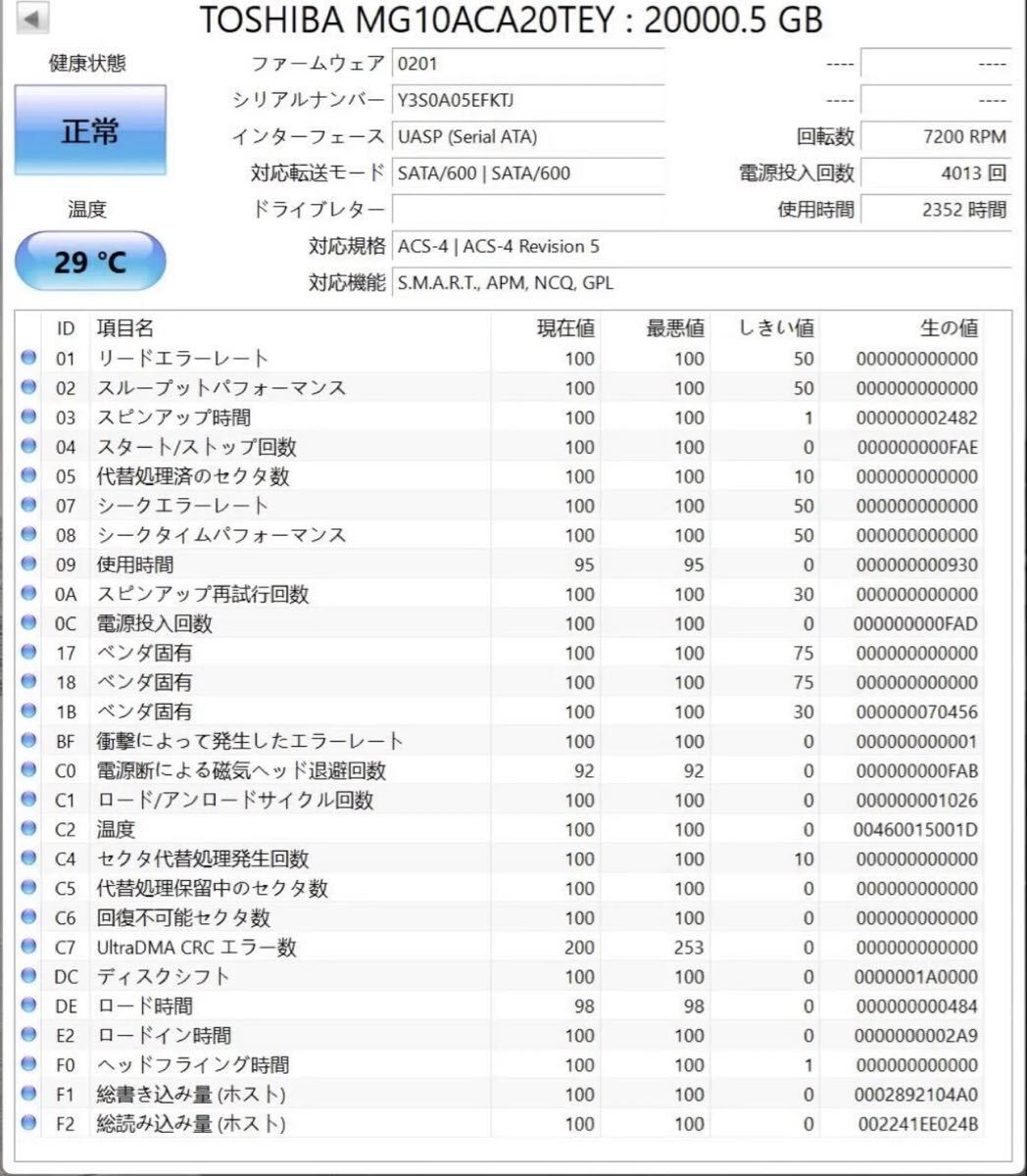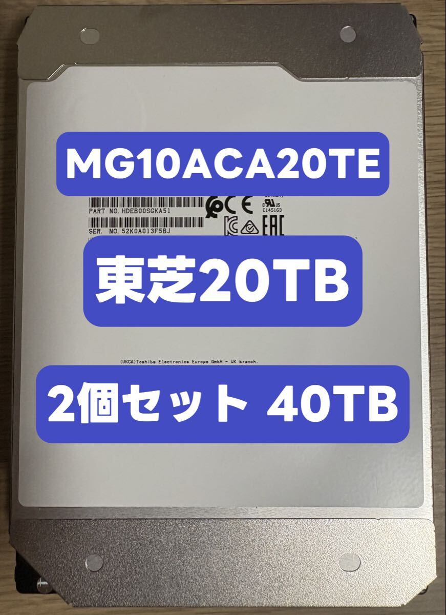 [2個セット 2,400時間美品] 大容量HDD 東芝 20TB MG10ACA20TE/Y SATA 3.5インチ CRM 收藏