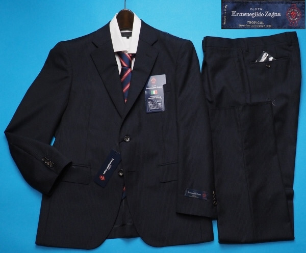新品17.3万円 大手百貨店扱い 春夏『Ermenegildo Zegna ゼニア TROPICAL 伊製生地』ウール100% ストライプ スーツA4紺(B) 1501871 收藏