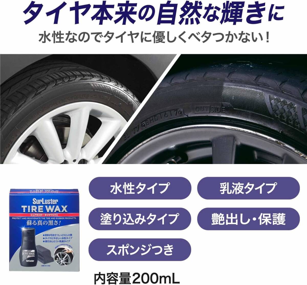 SurLuster(シュアラスター) タイヤワックス 200ml 水性 塗りこみ タイヤの艶出し 保護 ひび割れ防止 シリコーンオイル 乳液タイプ スポンジ 收藏