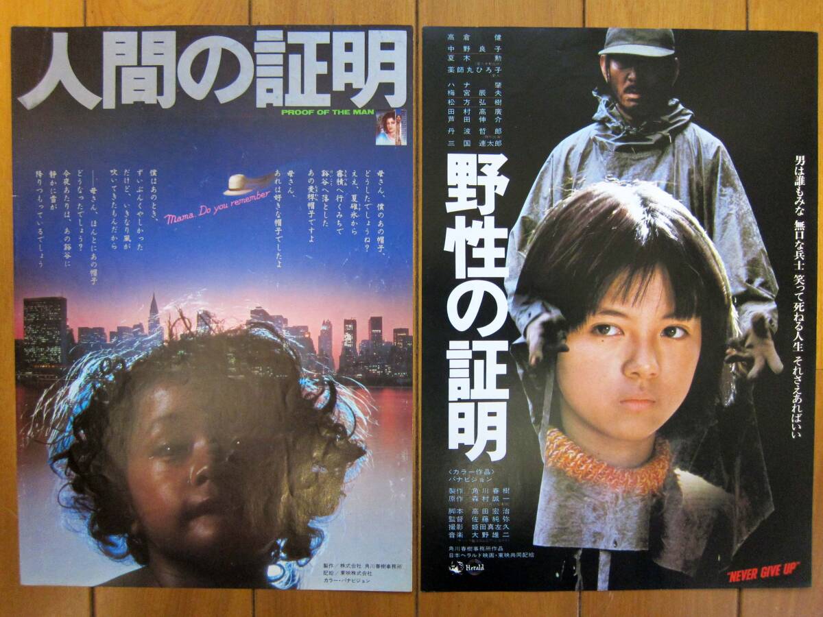 ☆表示価格で落札☆映画チラシ☆森村誠一原作の2作品2枚☆角川映画シリーズ 人間の証明 野性の証明 高倉健/薬師丸ひろ子 労音 送料\185 收藏