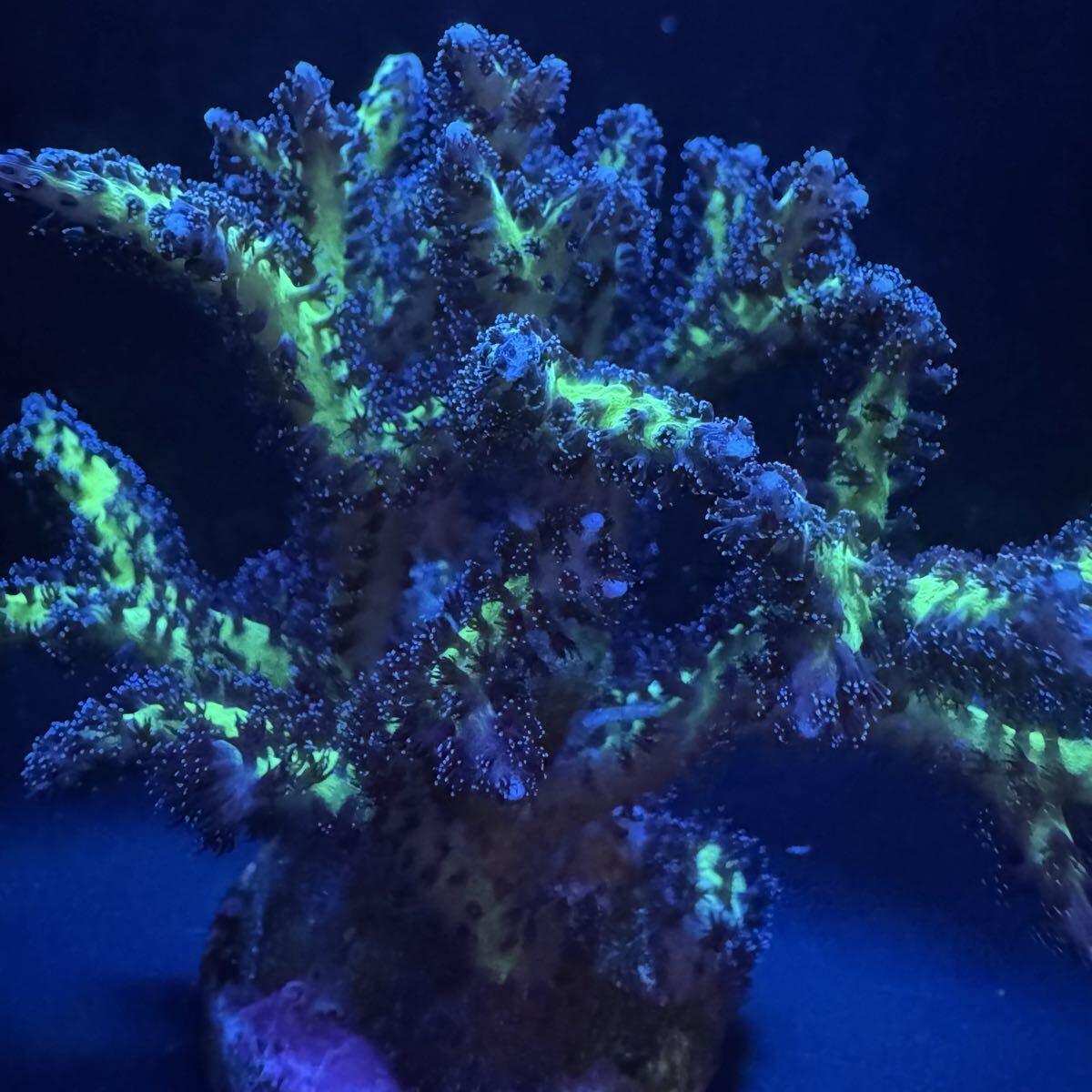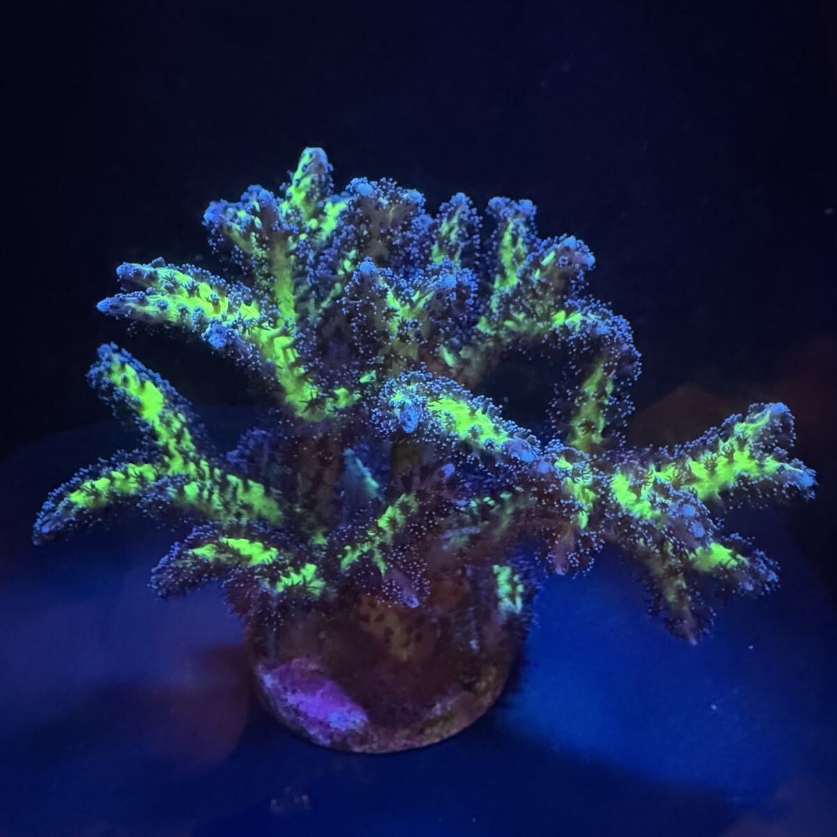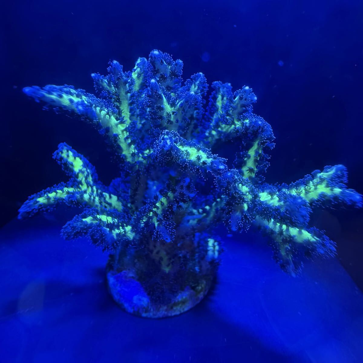 強発色 ② 密集 最大幅 約7cm 程度 高さ 約5cm 程度 トゲサンゴ 蛍光グリーン サンゴ 程度 プラグ 約2.8cm プラグに接着 SPS フラグ 收藏