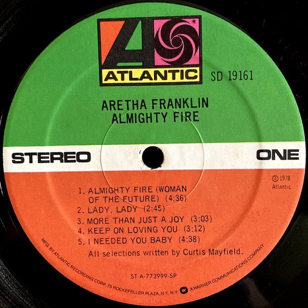 【US盤/LP】Aretha Franklin アレサ・フランクリン / Almighty Fire ■ Atlantic / SD 19161 / Curtis Mayfield / ソウル 收藏