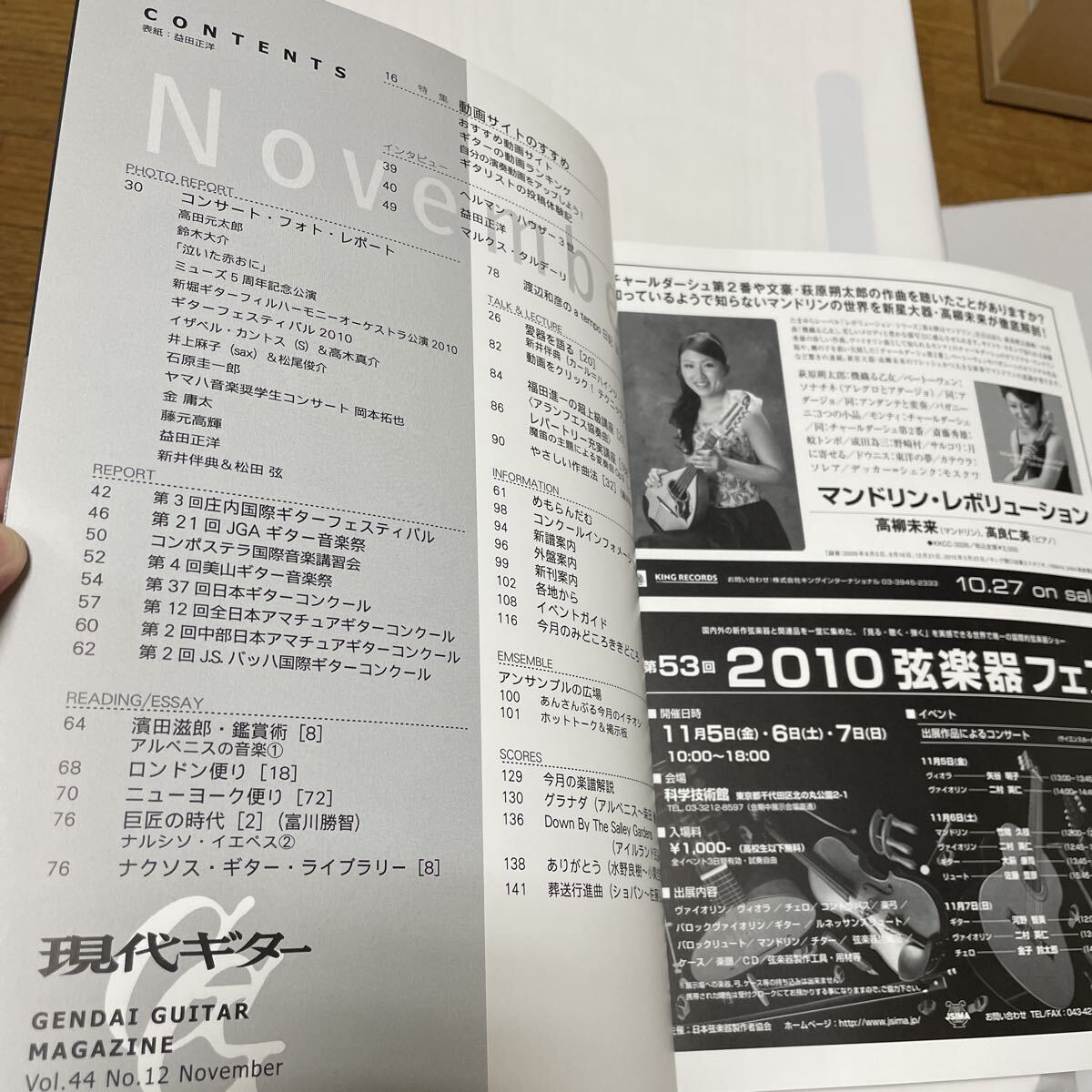 クラシックギターを楽しむための情報誌 現代ギター 2010年11月号 收藏