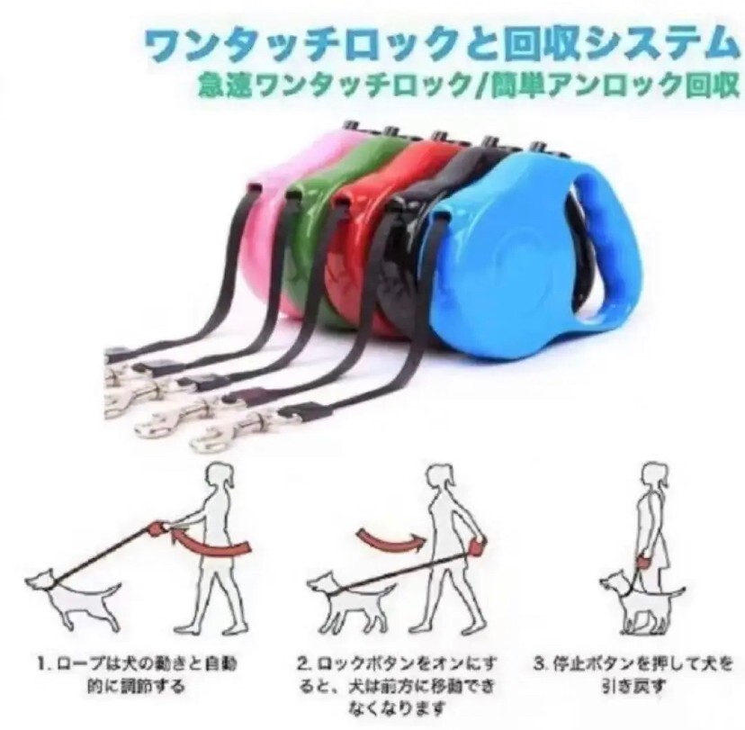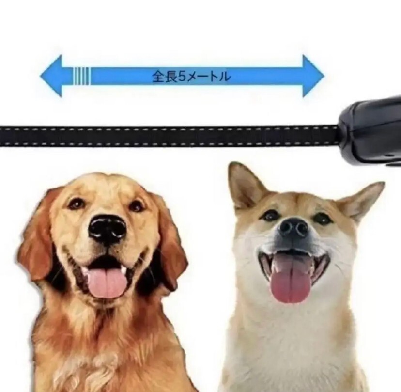5M 自動伸縮 リード ペット用品 犬 ドッグ 犬用 伸縮 リード コードタイプ 5M 黒 收藏