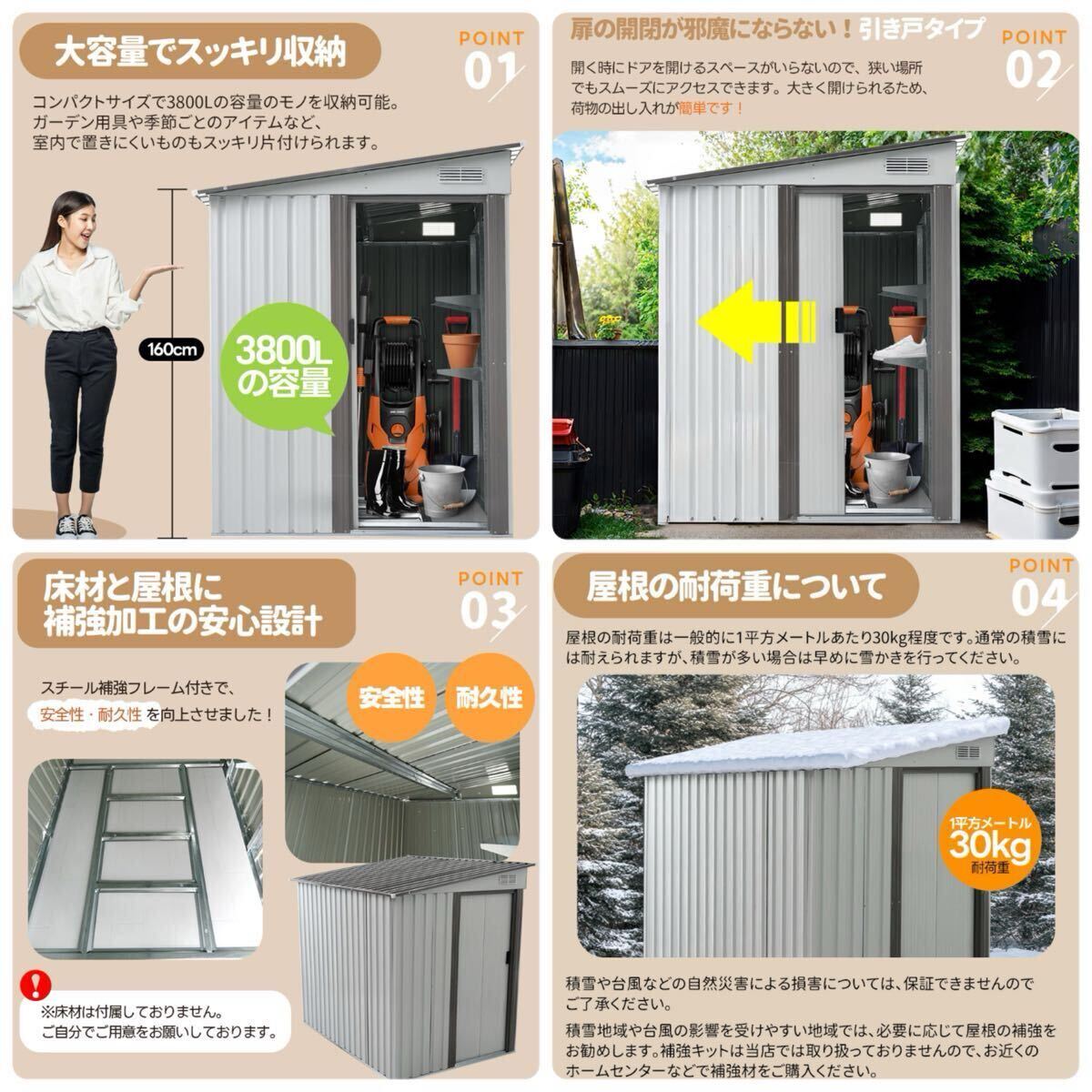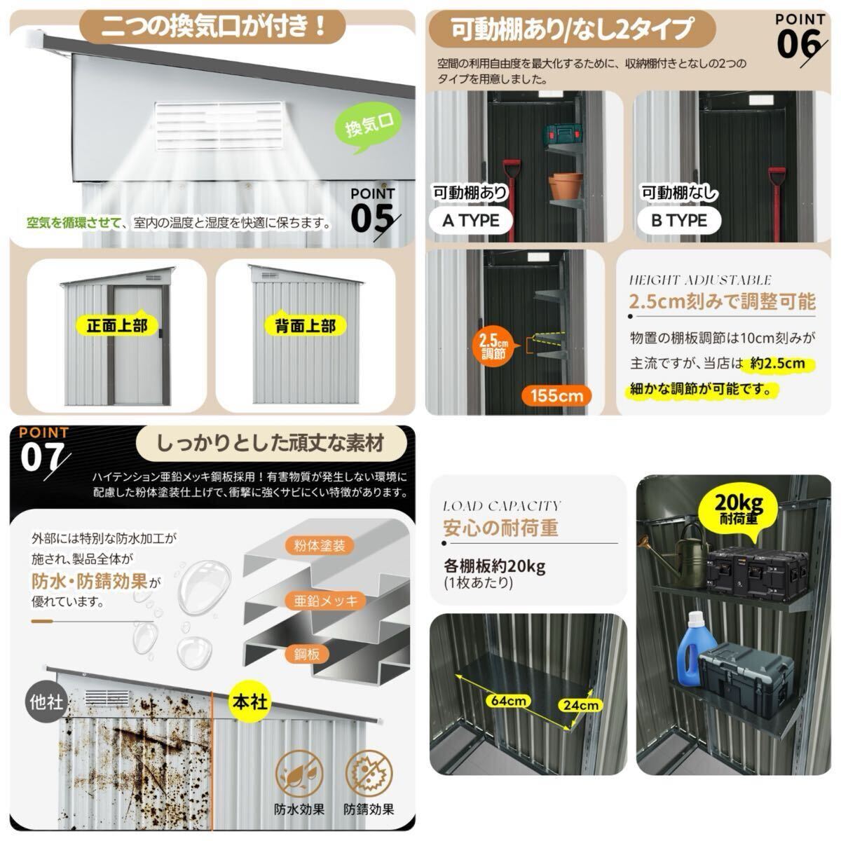 物置 スチール物置 物置き 屋外 大型 大容量 屋外収納 物入れ ライトグレー 收藏